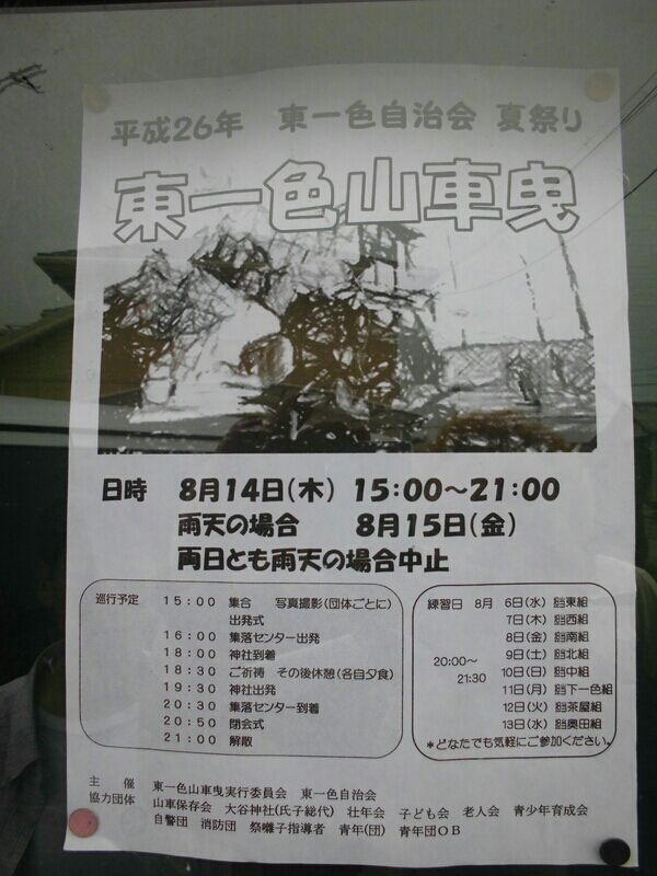 事前準備の続きと鉦鼓練習日の紹介です。 8月に祭礼日が改められてからは、7/15~20が鉦鼓練習日でした。 それが今年から、海の日(石取祭ばやし優勝大会)とその前5日間の計6日間となりました(H26年は7/16~21)。 祝日法が再度改正されて、海の日が7/20に戻るような動 ...