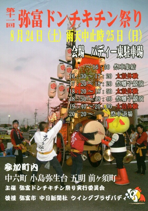 今年は前ヶ須町、五明、鯏浦中六町(均車)、小島弥生台が参加です! 昨年は第10回記念として、前ヶ平が参加しました。 今年は早めに会場に来てみました! 会場には中六町と五明のみ到着済み。 中六町は均車に念を入れて、雨対策を施しています! 五明は…提燈、万燈 ...