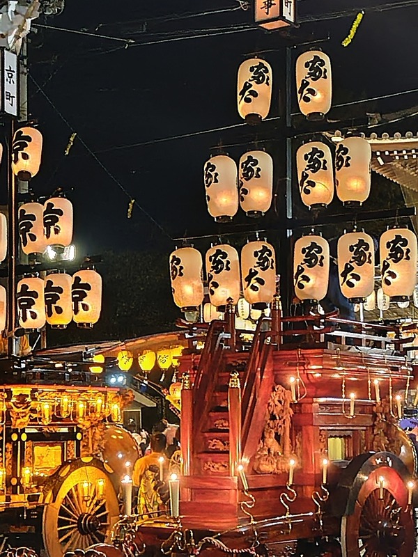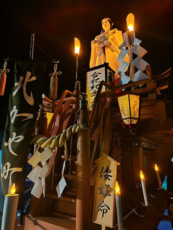 7/27 橋北三町との曳き別れが終わり、それぞれの町に戻っていきます!六郷連神戸北萱町本楽は倭姫命の造り物を載せます。祭車の上はこんな感じです。水引欄間周りの燭台も雪洞を付けます。試楽との違いも見てみてください。町内宿前に着くと残り時間を楽しみます。同級生で摺 ...