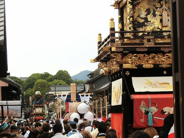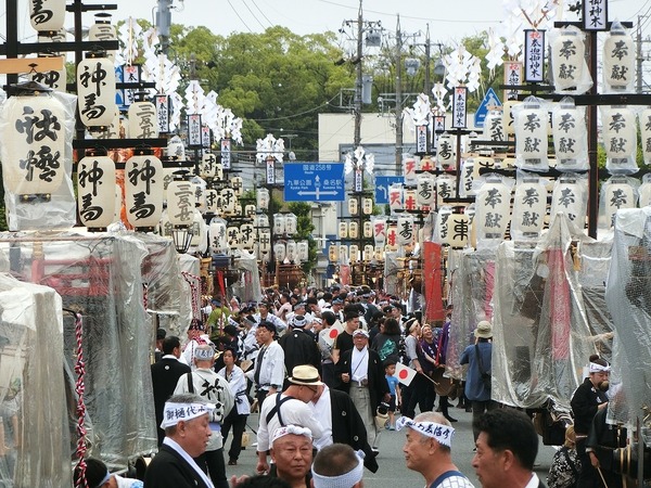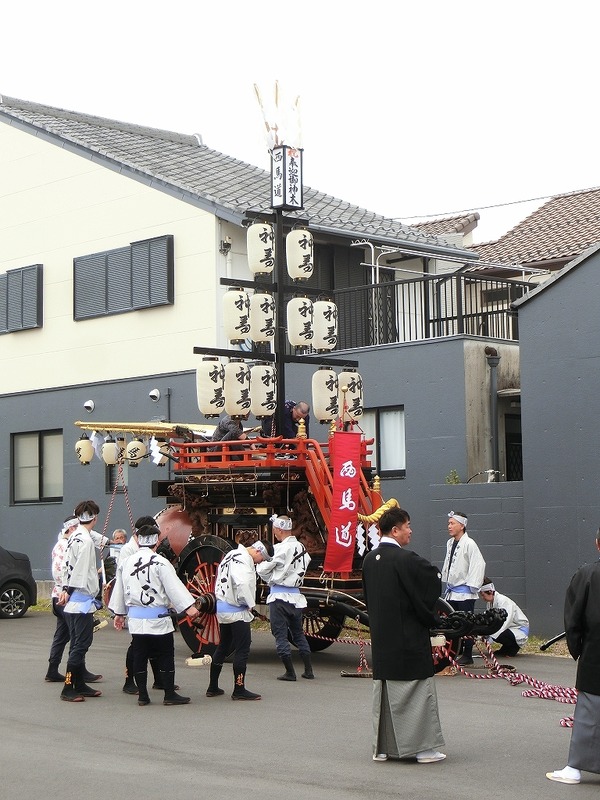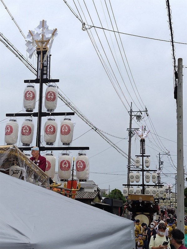 6/8 第九組内を祭車は進みます!先頭の上野町祭車は、早めに第九組内を通っていきました。第九組 東鍋屋町天武天皇社前で第十組、第九組祭車の通過を待ちます。今春、山形柱を新調しました。一目連神社の手前まで進みます。金刀比羅神社前では第九組掛樋の役付きが交通整理に ...