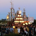7/20 イオン駐車場内で夕暮れとなりました!各祭車では明かりを点します。午後7時45分頃、駐車場を曳き出して東洋町商店街を北進します。松原西平町松三松原西元町松原東洋町松一松二いし月前に整列します。順番に左右に振り分けて整列しました。西より松三、東洋町、松二、 ...