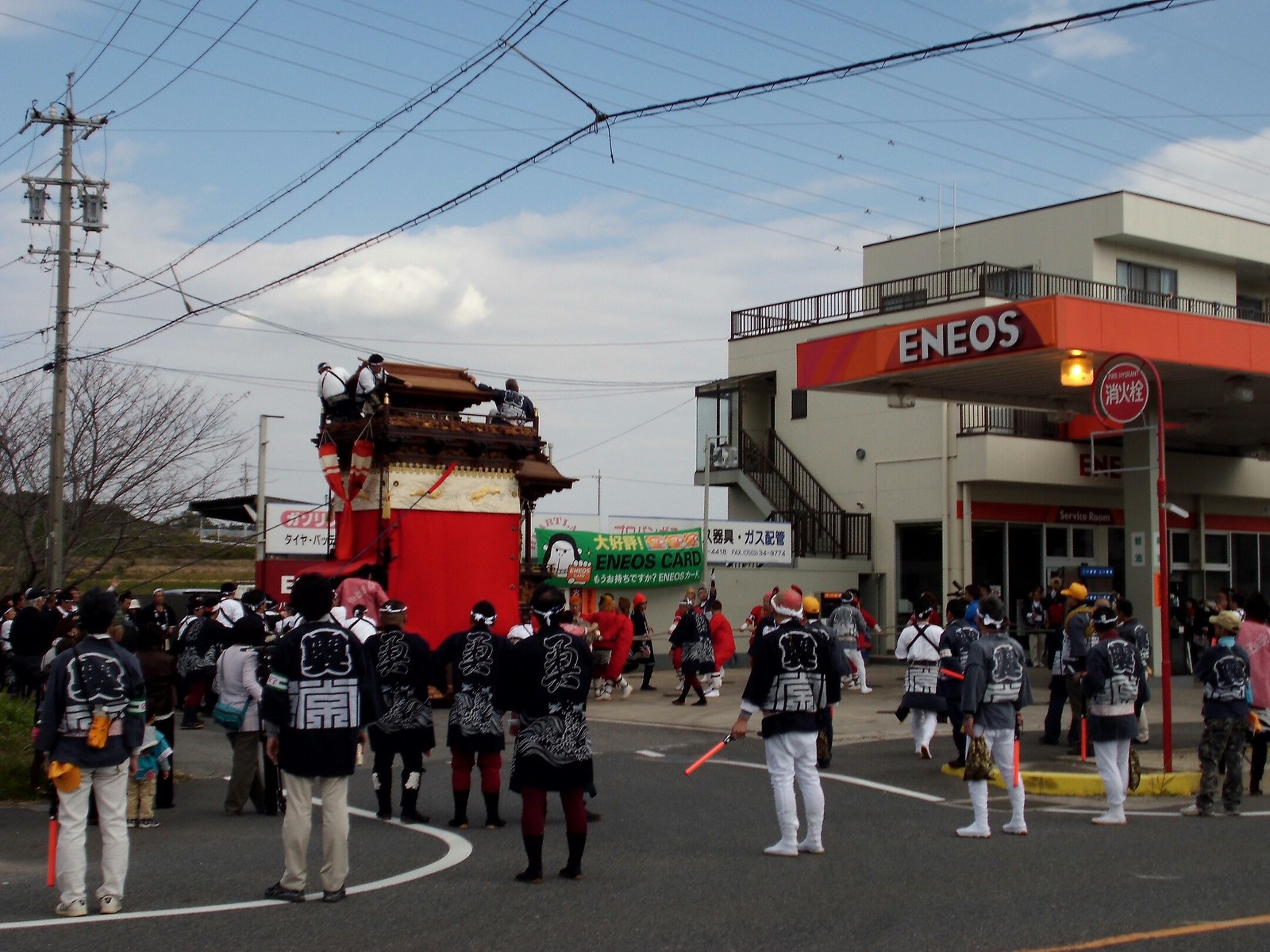 ようやく追い付いたのは、山車のガソリン補給の時(?)…みたいな