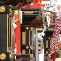 5/27 新出来町 鹿子神車の棒締め後の試験曳きです!祭り1週間前という事で、須佐之男神社の幟を立てます。山車は前幕だけを付けています。おっと?大将人形が出てきました。大将人形のスペースに太鼓を吊ります。というのも、普段囃子方が乗る場所に本祭では乗る事の出来な ...