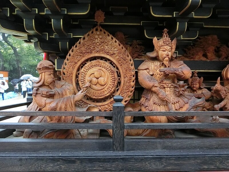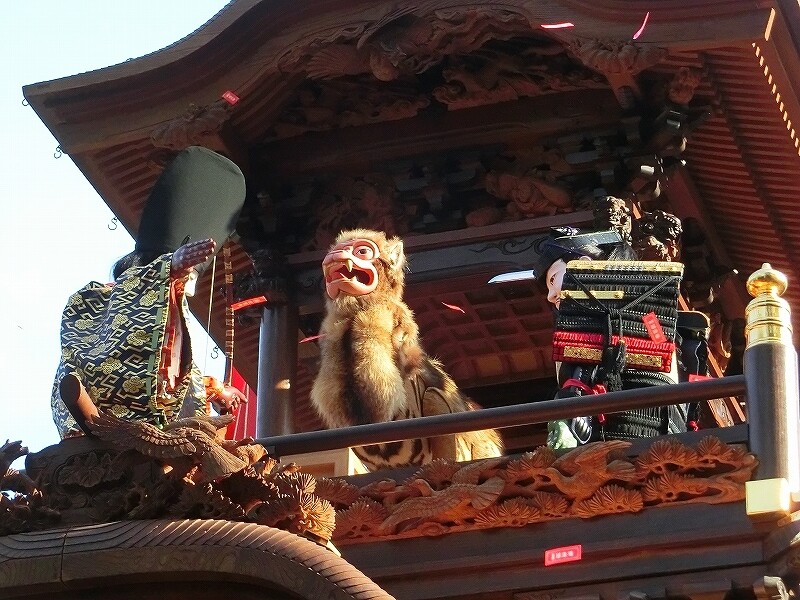 唐破風の屋根の下に御幣を置き、からくり人形が乗る山車もあります。