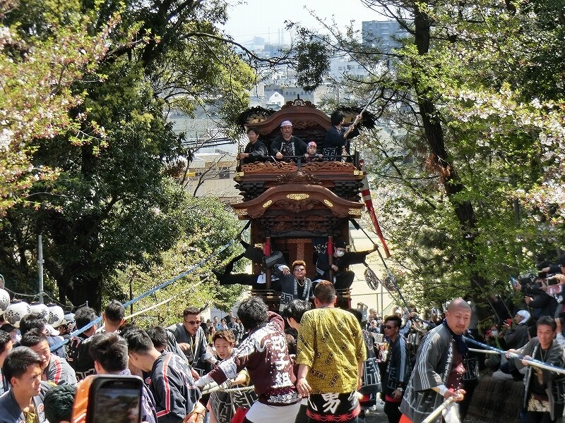 重い山車が坂を下るのは大変危険なため、無事に坂を下ろすのも見せ場の一つです。