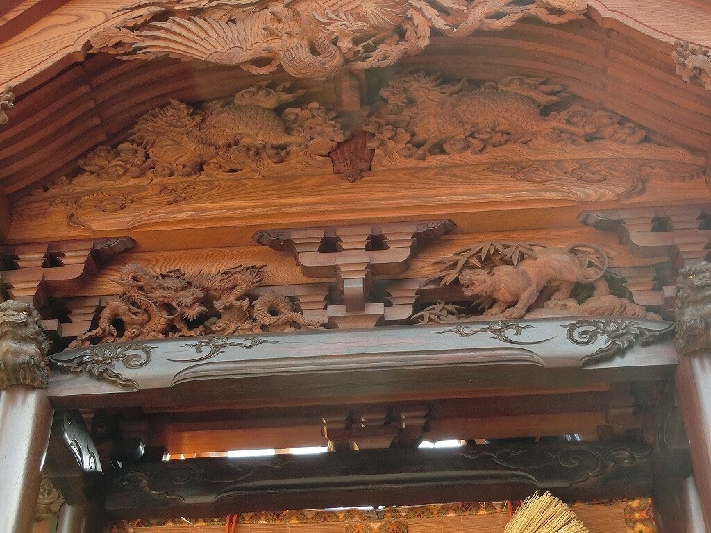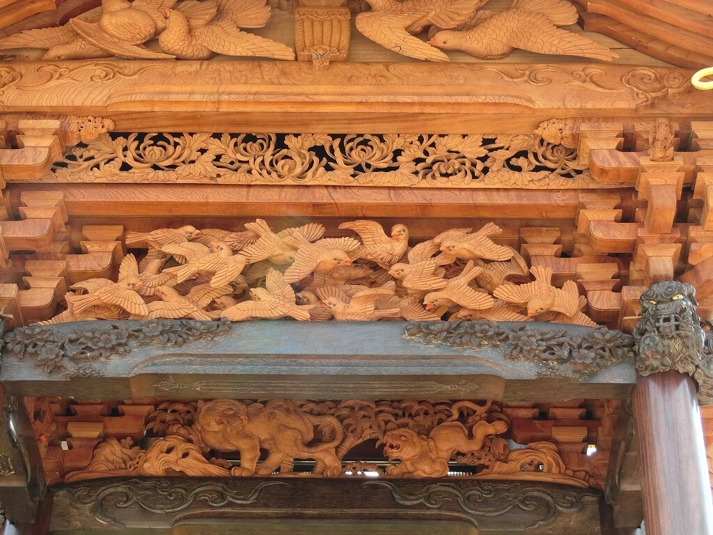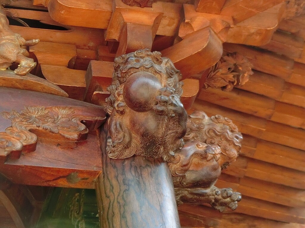 また後部にも蟇股はあり、こちらも一つのものと二つのもの、見えにくい場所なので彫刻の無い場合もあります。