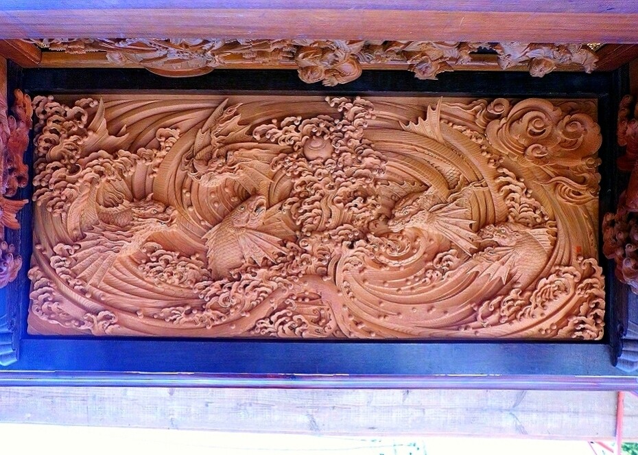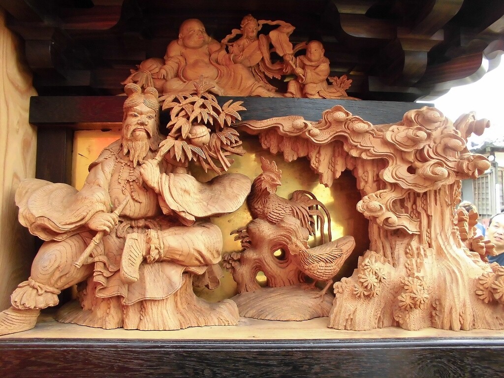 御殿造りと呼ばれ、個々の彫刻を配する場合が多いようです。