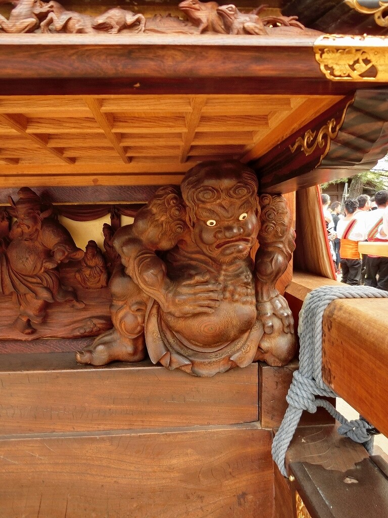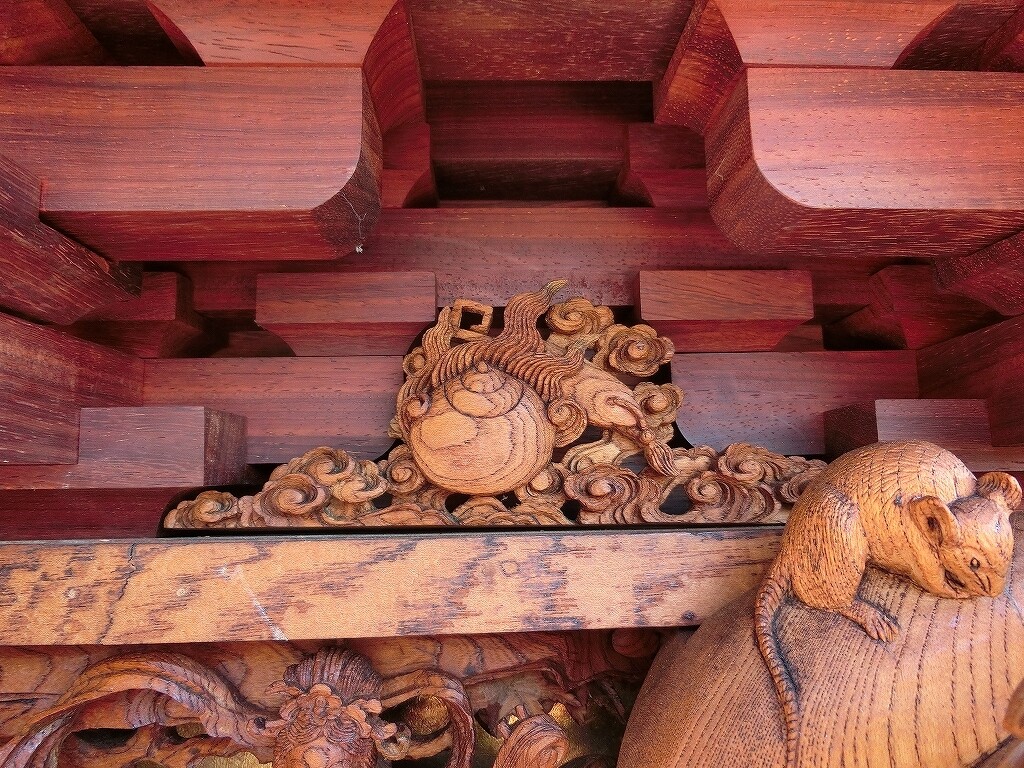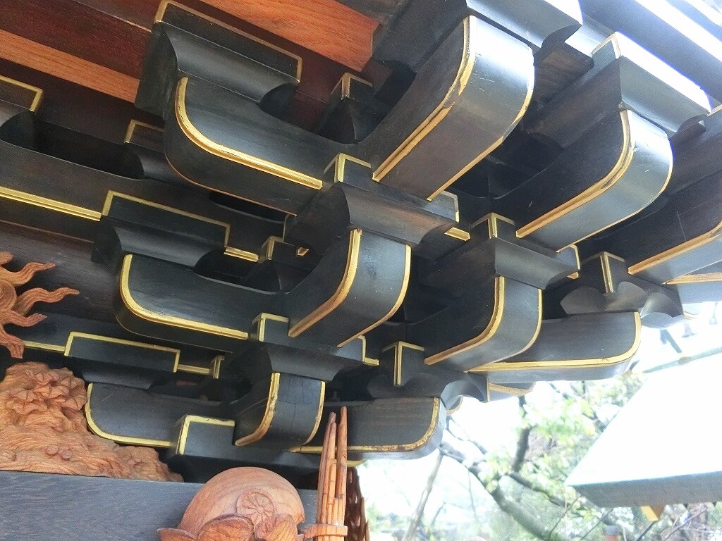 斗組があり、力神などの彫刻が両端にあるタイプです。