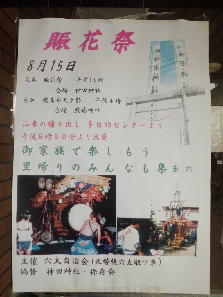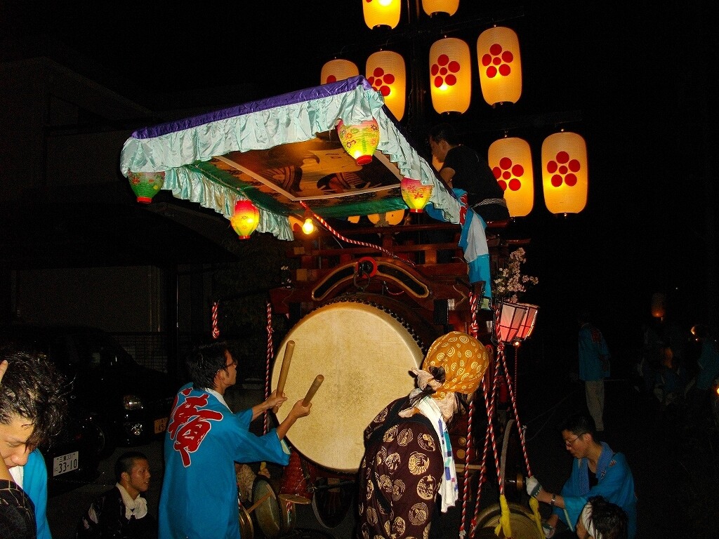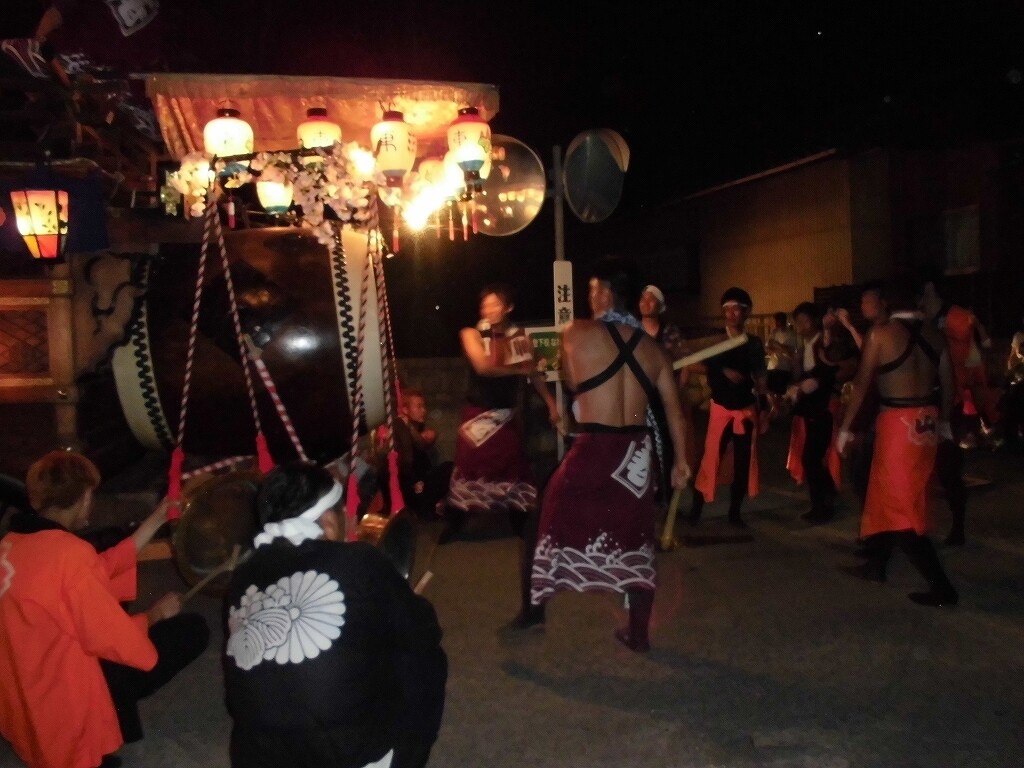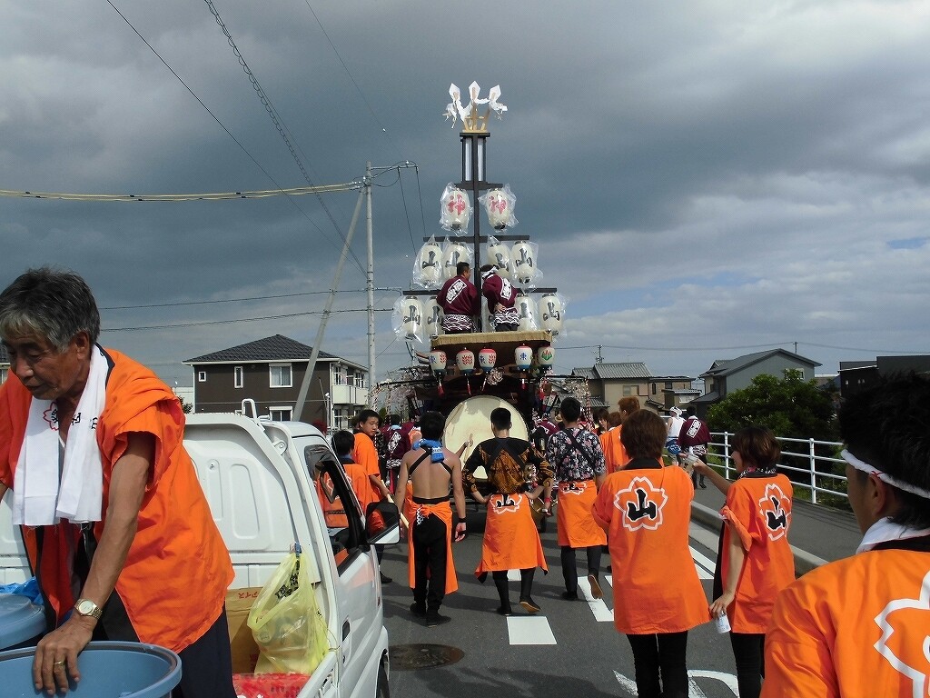 夕方より祭車を曳き出し、桑名市五反田との境の弁天橋付近や三岐鉄道穴太駅前などを廻ります。