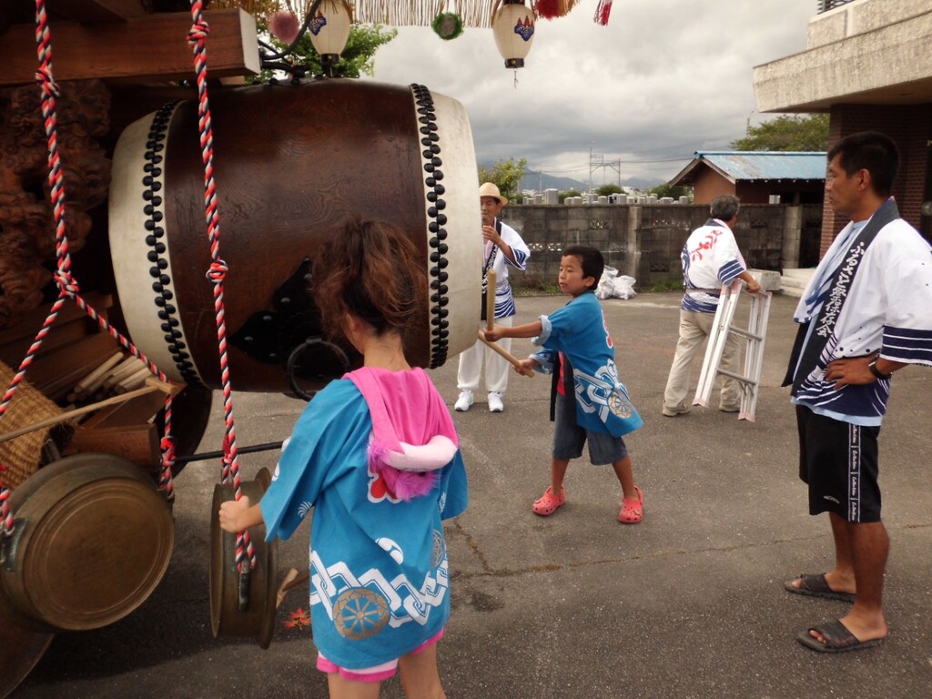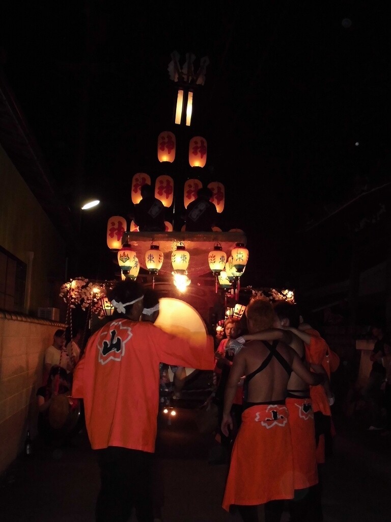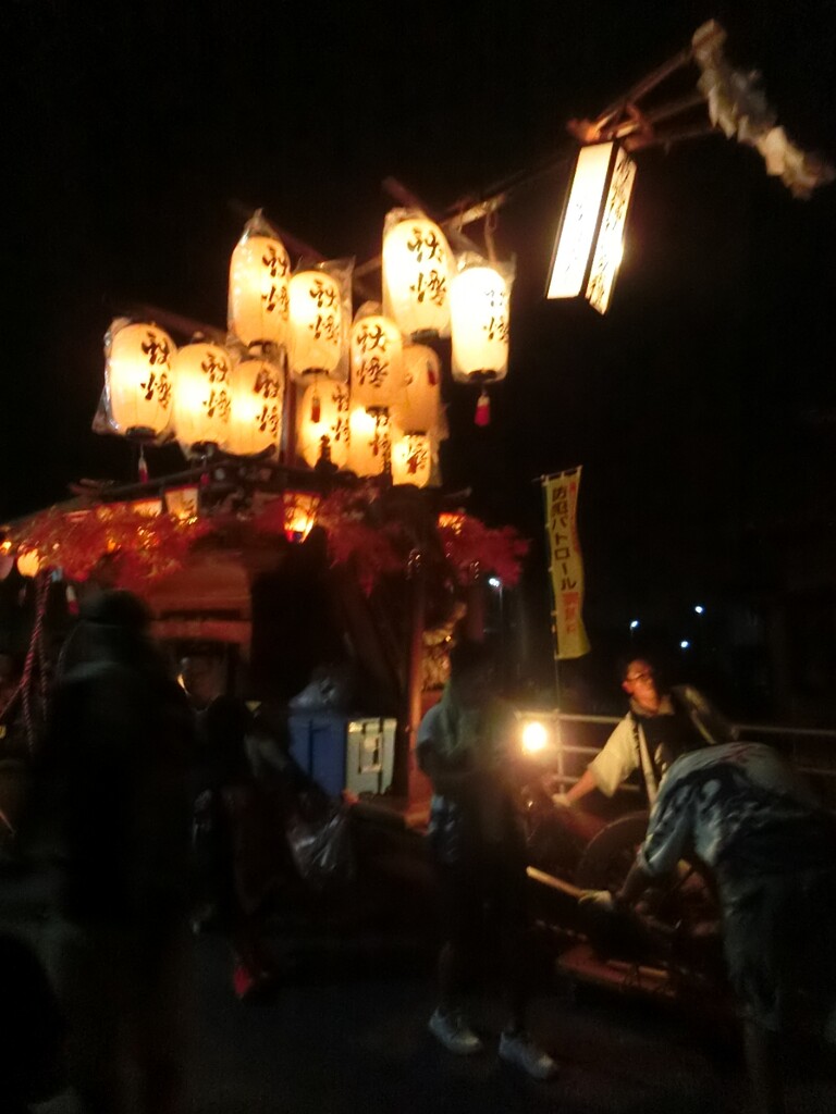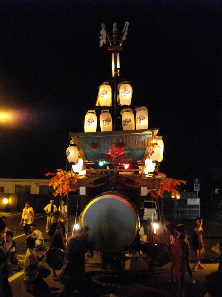 夕方より祭車を曳き出し、桑名市五反田との境の弁天橋付近や三岐鉄道穴太駅前などを廻ります。