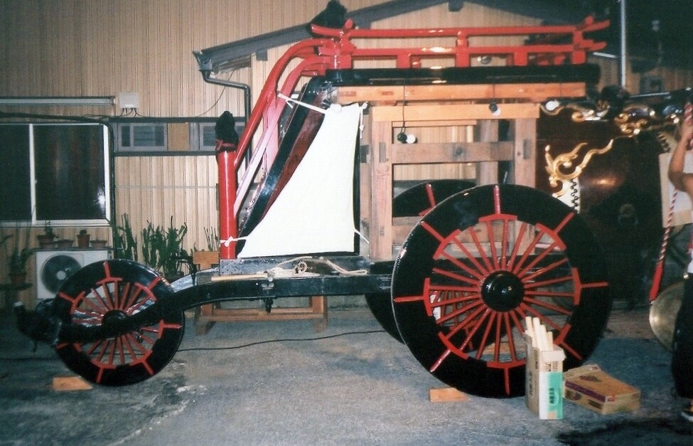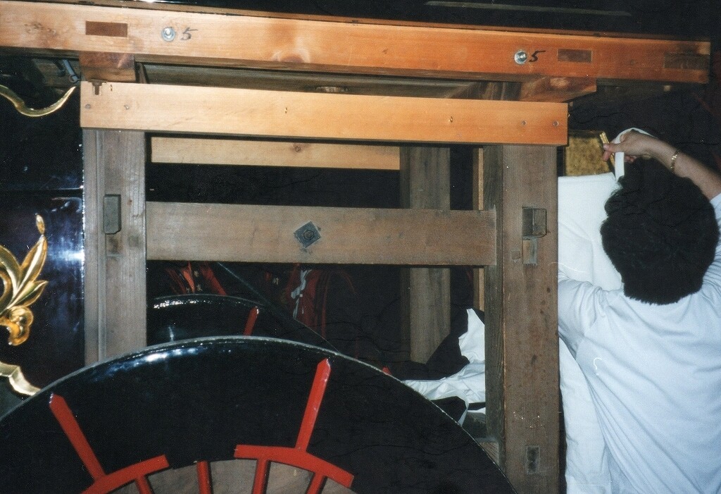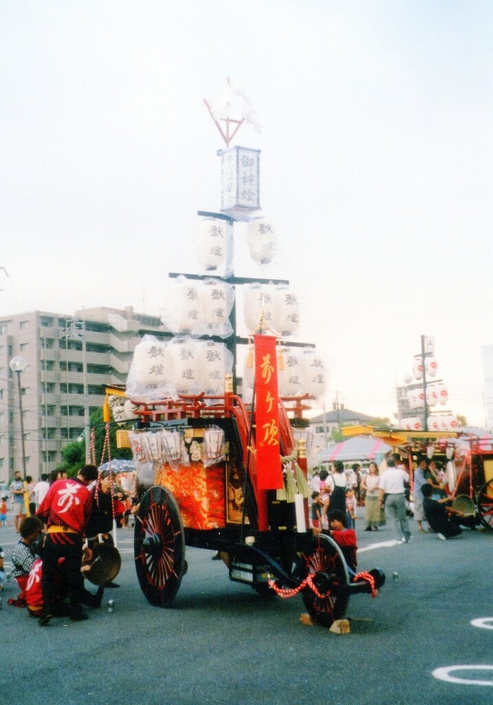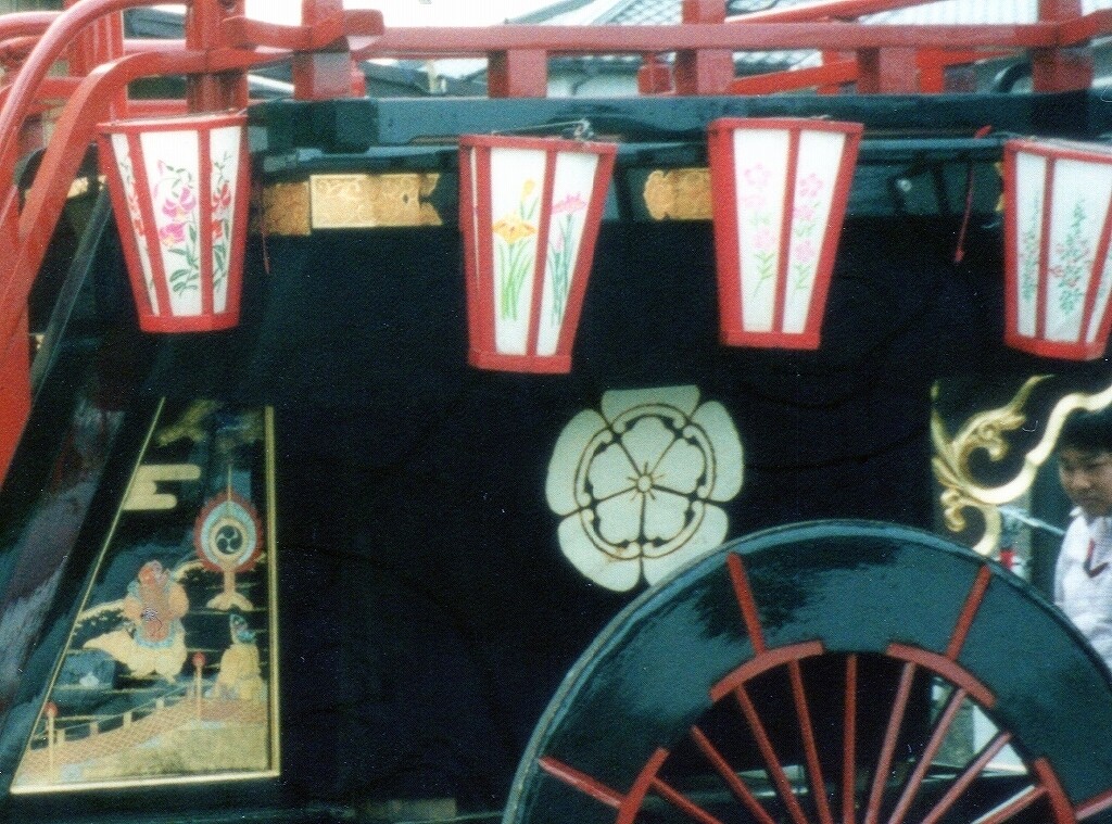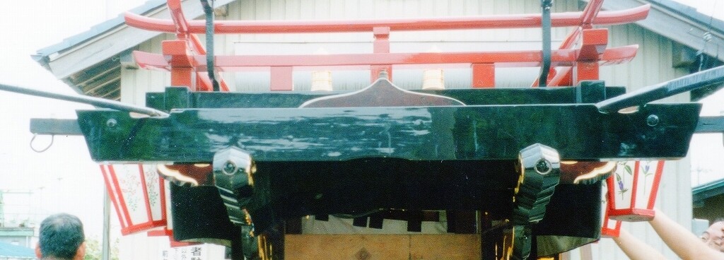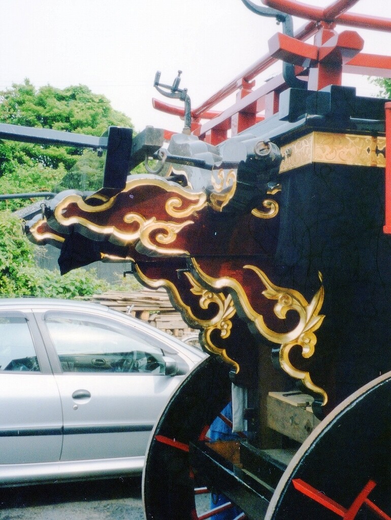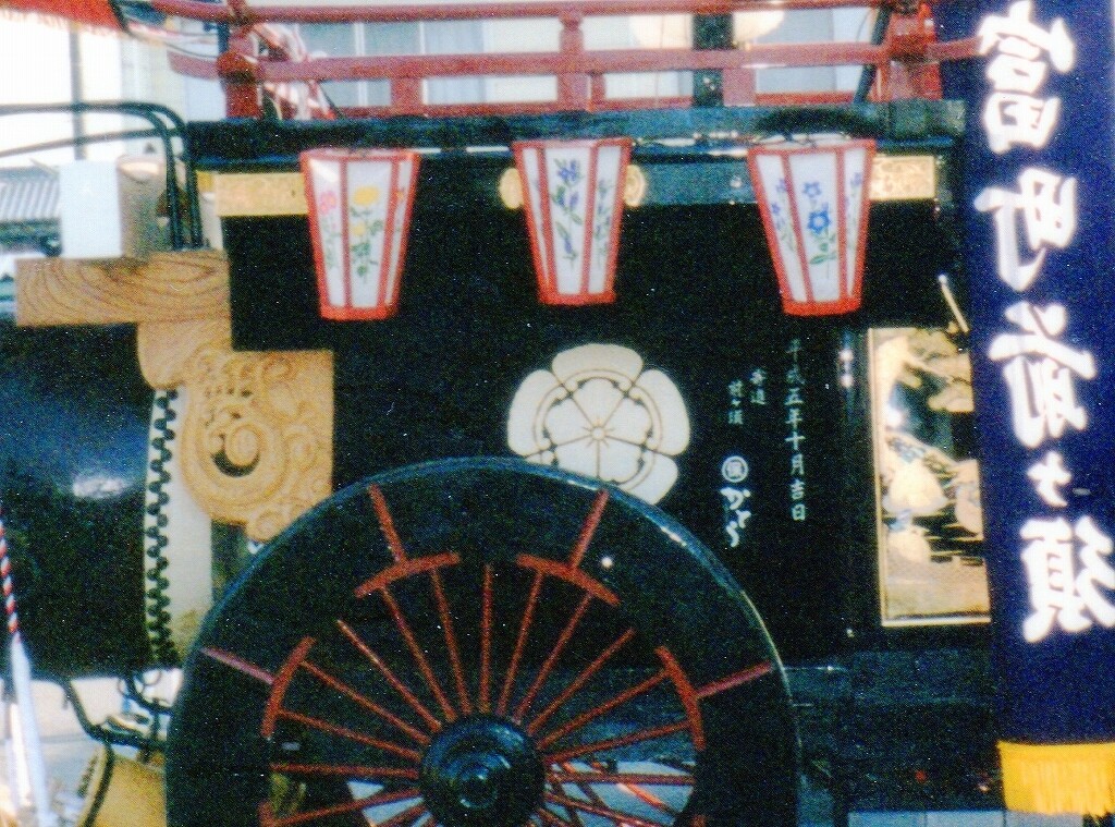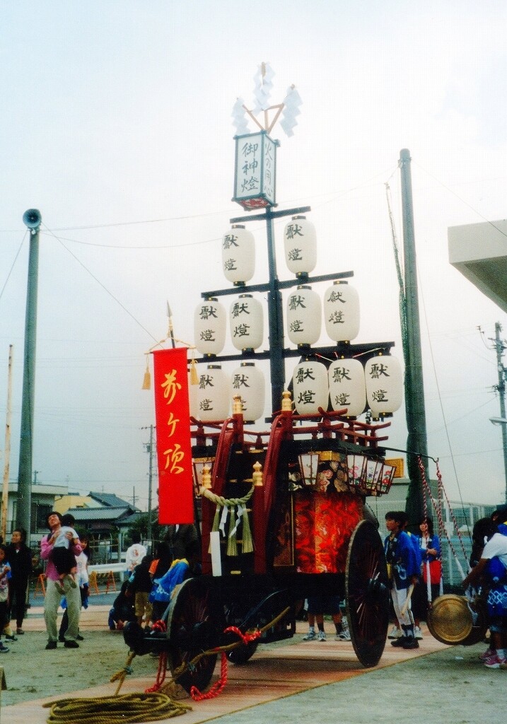 - 祭車経歴 (水引幕胴幕型祭車として建造)桑名堀端町(入江葭町?傳馬町?)→弥富前ヶ須町→(水引幕型祭車として改造)四日市市山分町
