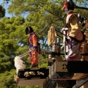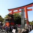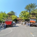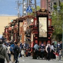 5/4 津島神社南門での車切の続きです!中之町文字車です。死に輪取りに中之町は苦戦していました。ん?一枚(二人)で担いで回してます!!楫方のスゴ技ですね!一足先に、上之町が車切を終えて曳き出しました。駐車場を南へ進みます。居森社の前を通ります。南の大鳥居をく ...