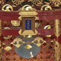 5/15 中町 布袋軕の続きです!後軕中央部は、箔押しの金龍です。後軕錺は神鶏です。後軕額側面は、桃に猿です。後軕額後部は、唐獅子です。後軕鏡板は、右側が素盞嗚命です。左側が奇稲田姫です。後軕鏡板後部右側が蝦蟇仙人です。後部左側が鉄拐仙人です。これから錺金具が ...