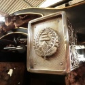 8/5 馬道祭車見学の続きです!隅腕は葡萄に栗鼠です。雲板欄間は松に瑠璃鳥です。太鼓裏側には彫刻はありません。方立袖、方立は花鳥組合せです。持送は力神です。太鼓掛は龍です。昇蒔絵は扇図です。縁場板は蟹図です。二階化粧板は貝を嵌め込んだ扇図です。額は叩出用が金 ...