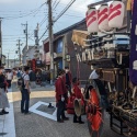 8/7 各町祭車が定位置まで送り込みを行い一息つく頃、春日前では習礼が行われました!習礼は渡祭始式のリハーサルで、斎火を点した赤提燈の受け取り方、お供え物の渡し方の確認です。このリハーサルを見ている人は、少ないかと思います。 京町交差点南側には、ハイエースが停 ...