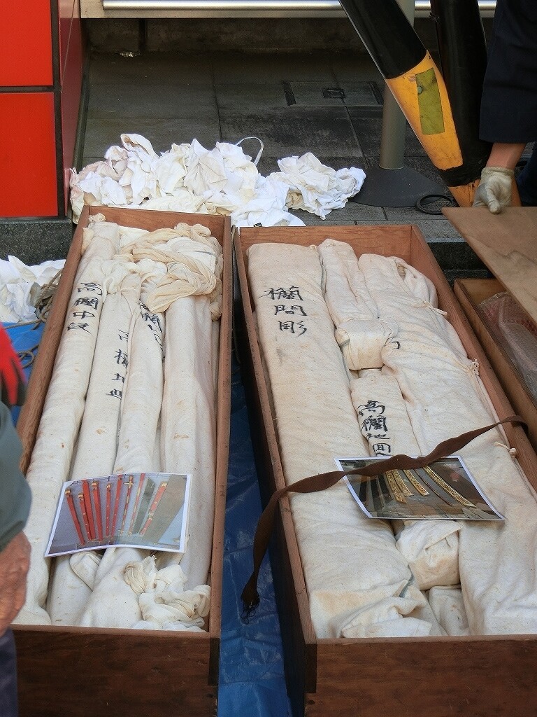 早めにブルーシートも外してくださり、部材や箱書も見せていただきました。