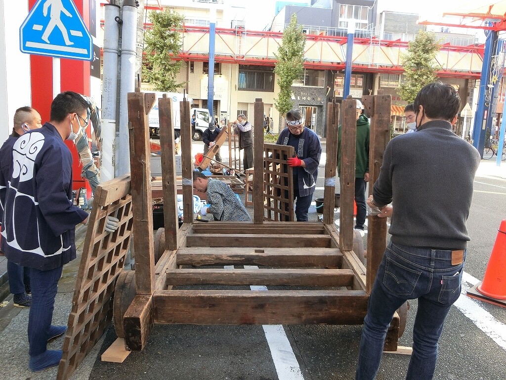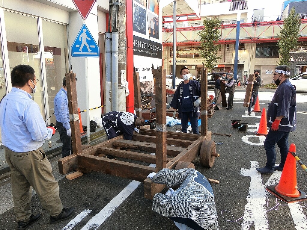 11/3 昨日ご紹介した梵天車(小陵王)が11年ぶりに組み立てられるとの事で、この時はコロナウイルスも治まっているので見学に向かいました!
