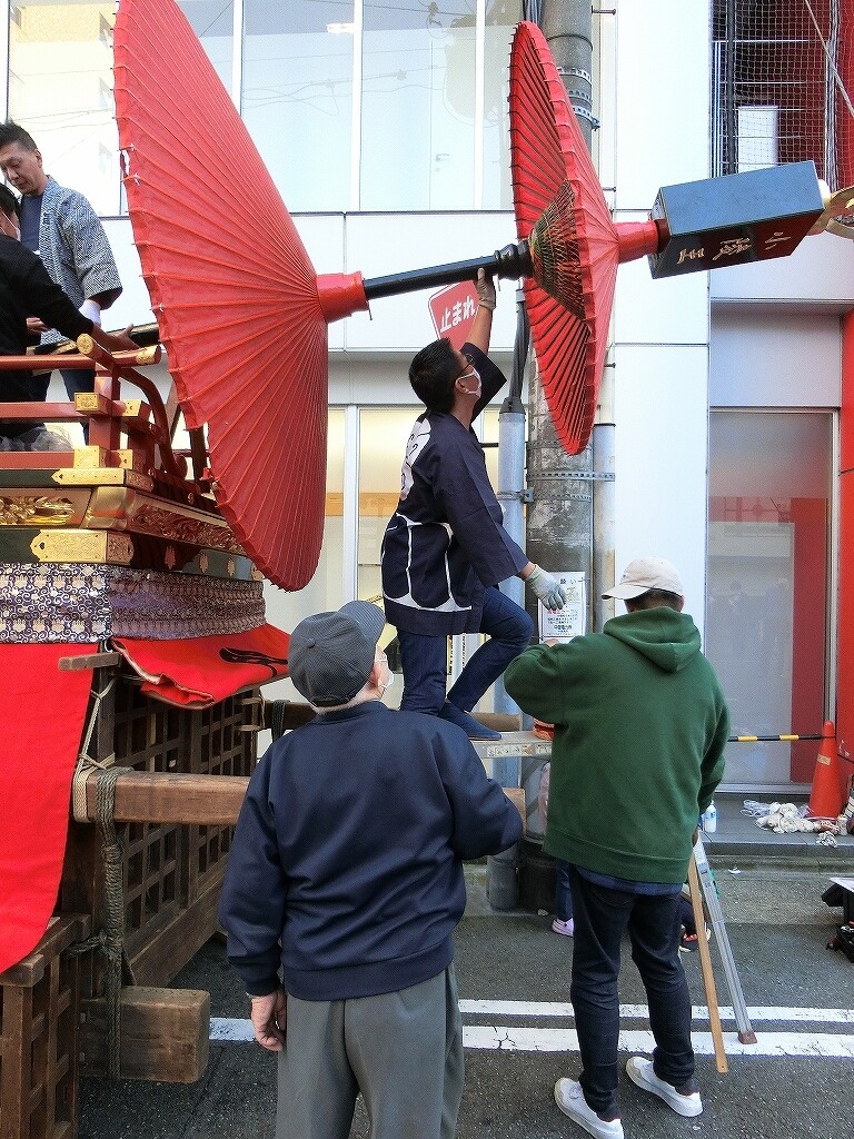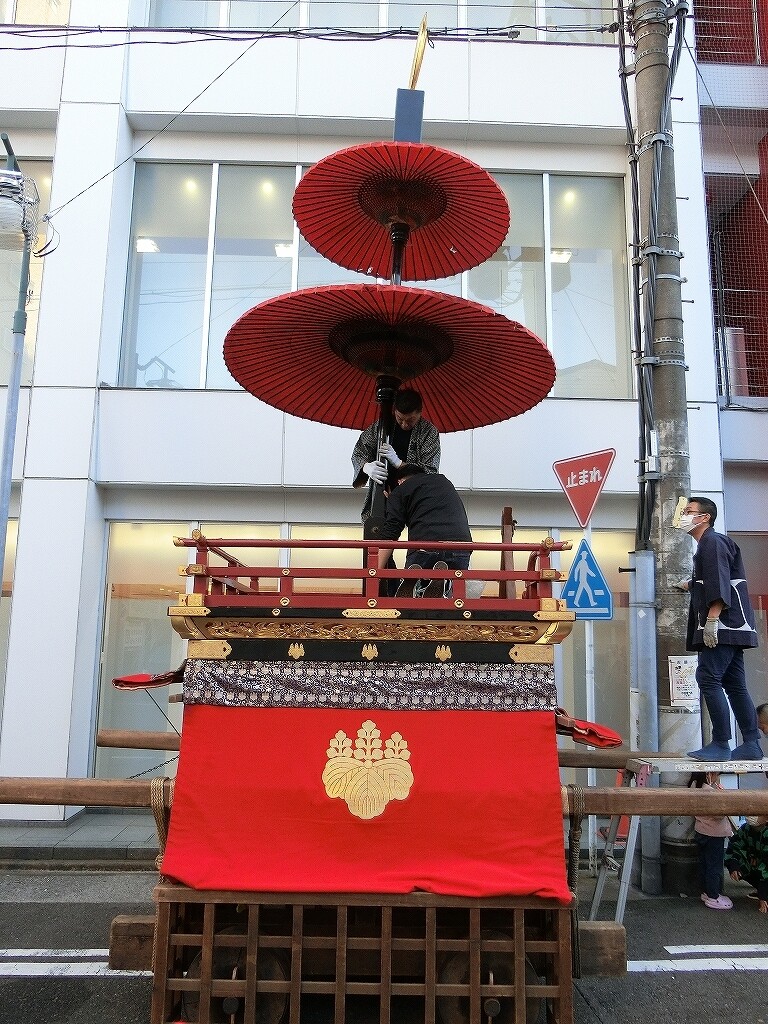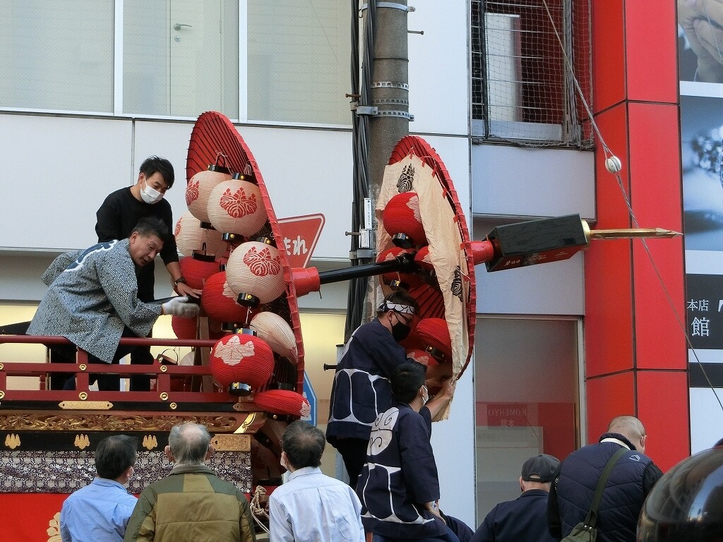 11/3 傘鉾を付け、提燈を吊るします!