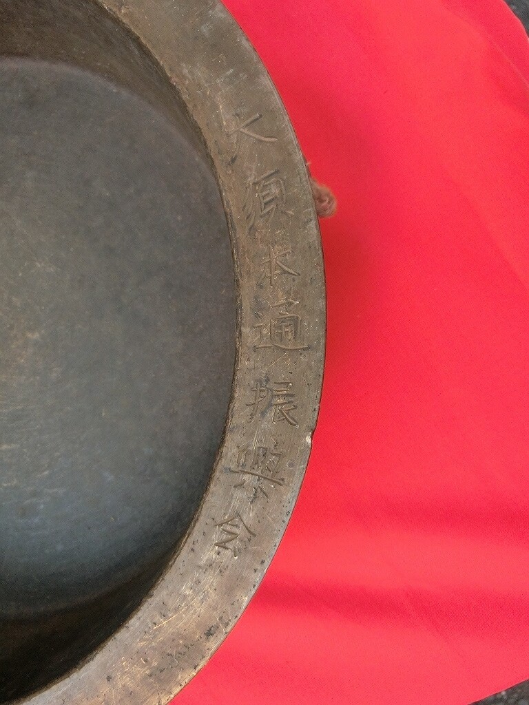 囃子実演の前に鉦を見せていただきました。