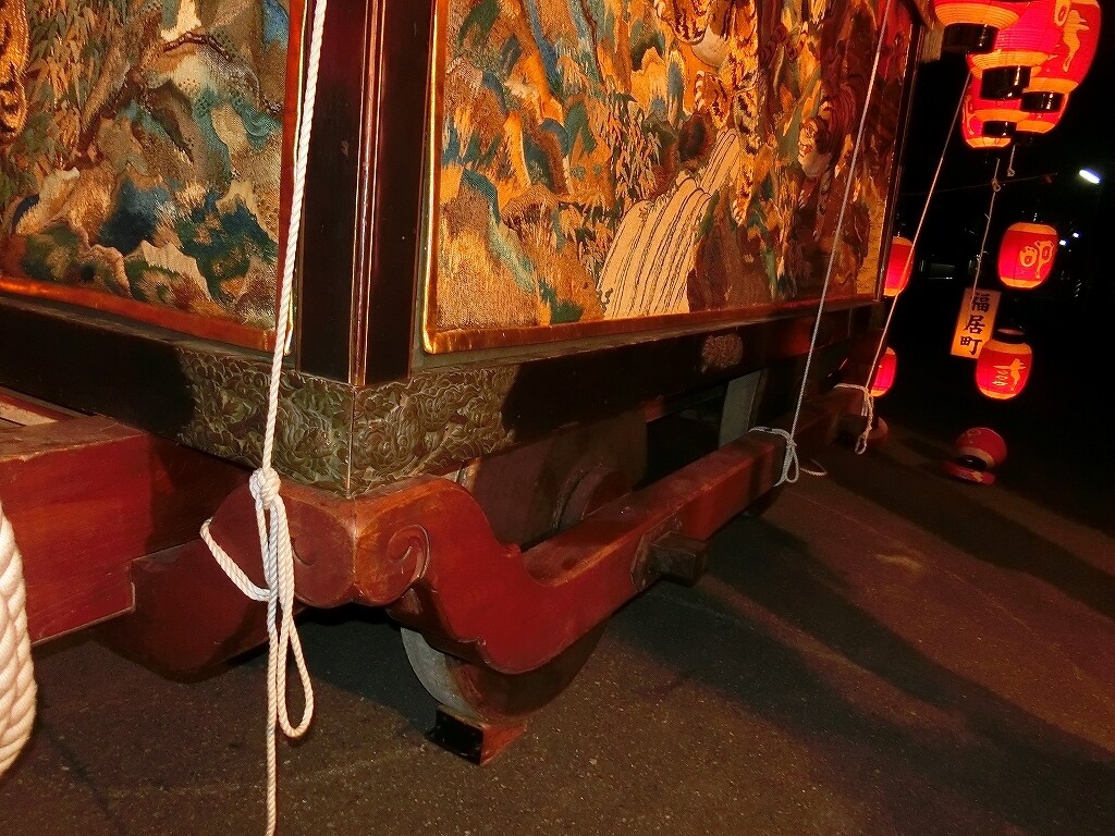 知多型と同じく唐破風の屋根が前山と上山にありますが、楫棒は後部にしかなく、前山の幅員も広く、蹴込は幕となっています。