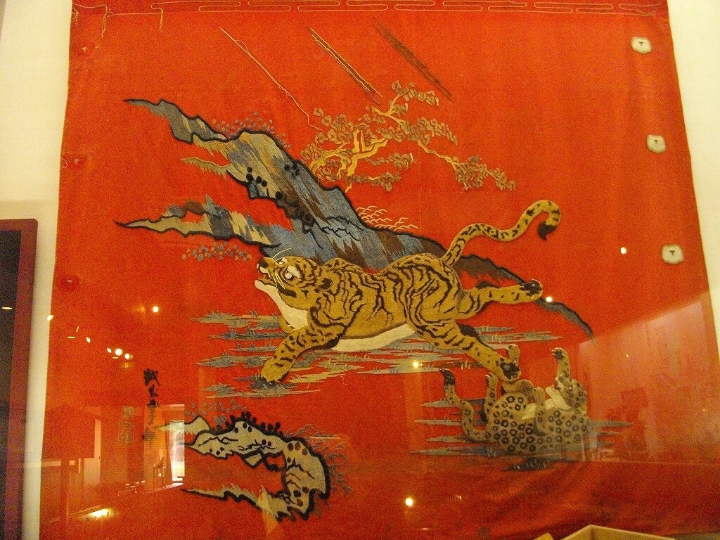 - 旧大幕(猩々緋に虎の刺繍 越前守岸駒下絵)
