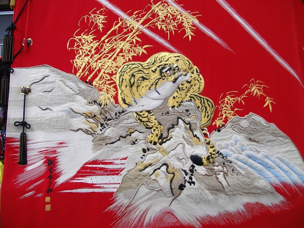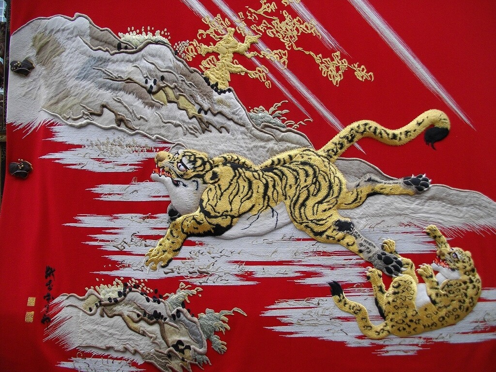 - 大幕(猩々緋に虎の刺繍 越前守岸駒下絵)