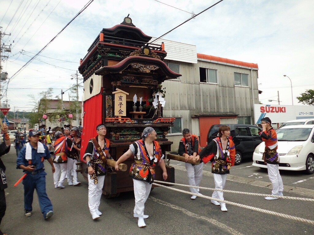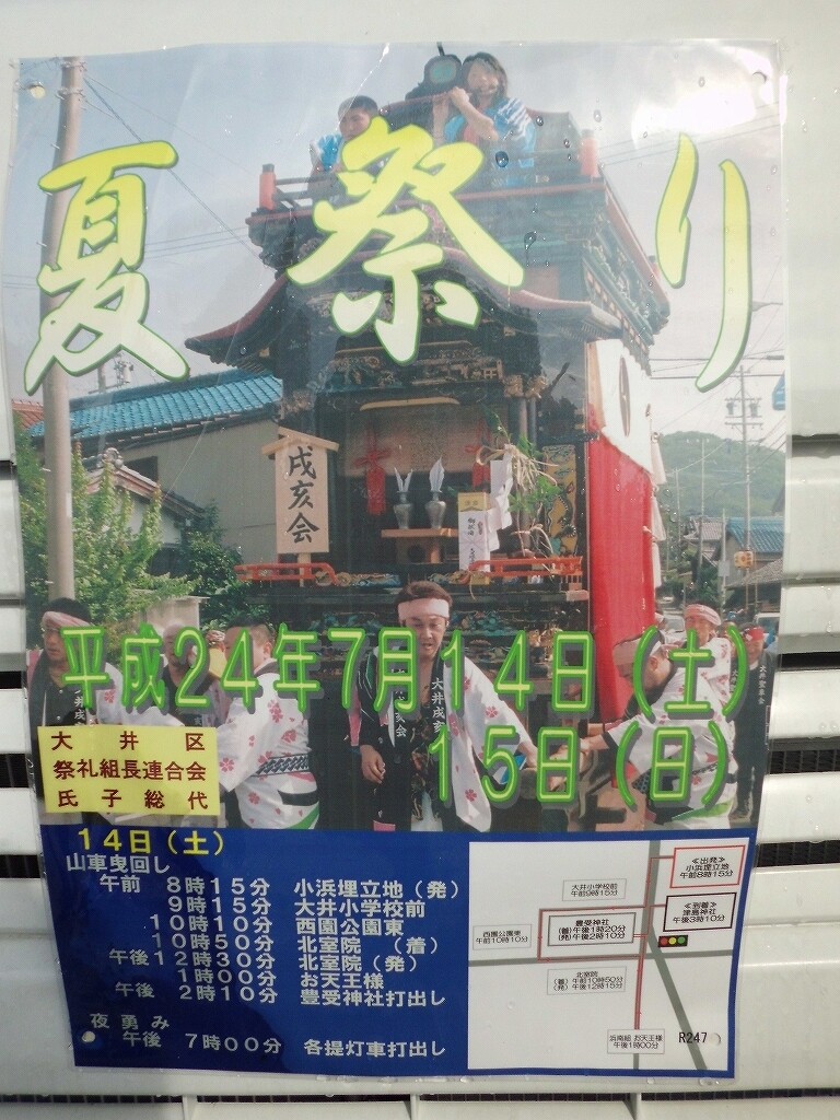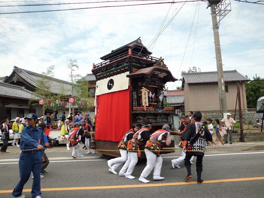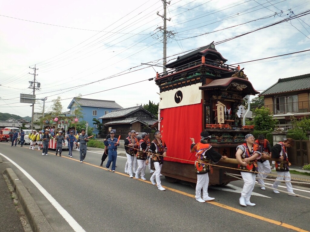 祭禮紹介【南知多町編②】 二〇二二年弥生三十日 コメント数:0 コメント カテゴリ:知多型山車祭随筆 by 風神雷神 【大井(おおい)】大井地区の祭礼で、7月第2土曜日に行われます。(豊受神社) (津島神社) 午前中から山車の曳き廻しが行われます。後ろに囃子屋台が付きます。途中、豊受神社に宮入りします。豊受神社打出し後、津島神社へと向かいます。津島神社へ曳き込み、神事の後曳き廻しは終了します。夜には各組より提燈車が曳き出されます。【お願い】 皆様のクリック(応援)がランキングに反映されます。 私の見学に向かう原動力ともなりますので、ご協力の程よろしくお願いいたします! (有効カウント1日1回のみ) ↓↓↓ にほんブログ村 にほんブログ村 YouTubeチャンネル登録もよろしくお願いいたします! ↓↓↓石取祭・上げ馬神事・名古屋型山車・知多型山車・犬山型車山・だんじり祭り 拍手もジャンジャンしちゃってください!! ↓↓ 「知多型山車」カテゴリの最新記事 < 前の記事次の記事 > コメント コメントフォーム 名前 コメント 記事の評価 リセット リセット 顔 星 情報を記憶 コメントを投稿する