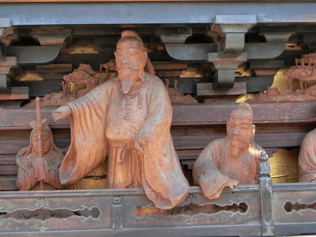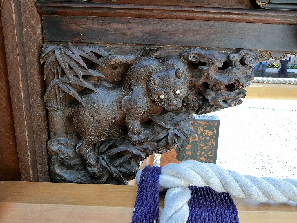 欄干にはみ出た衣も、彫刻師(初代彫常)の遊び心でしょう。