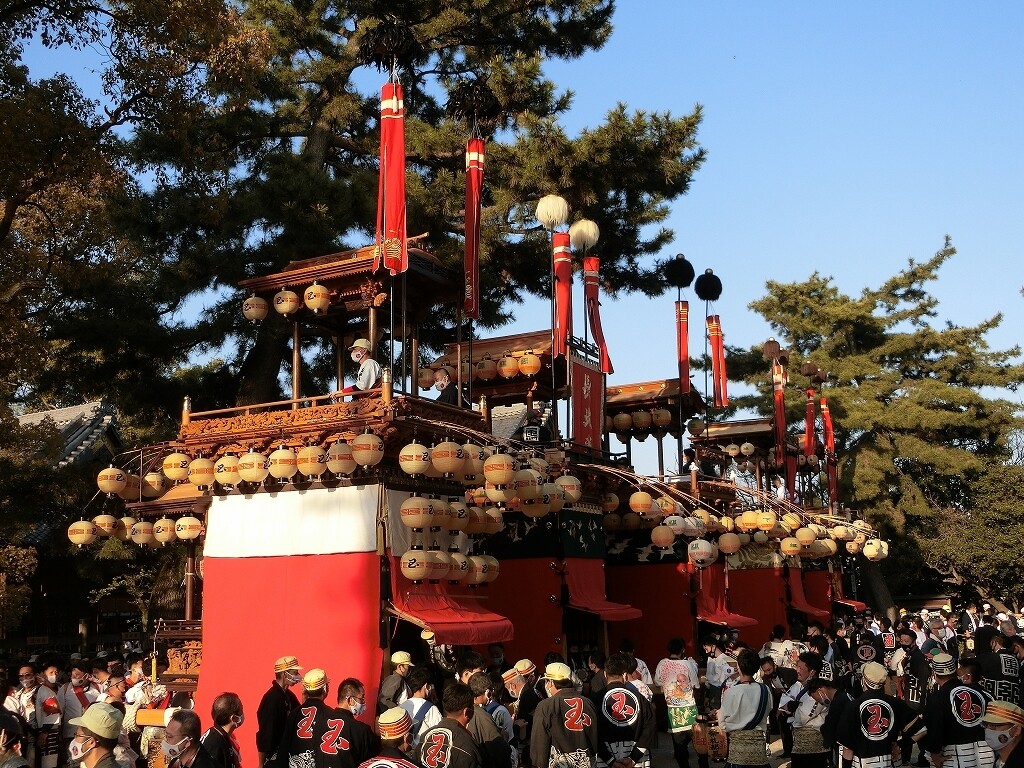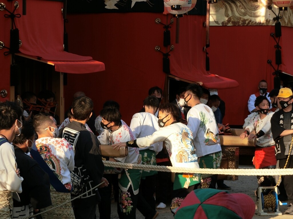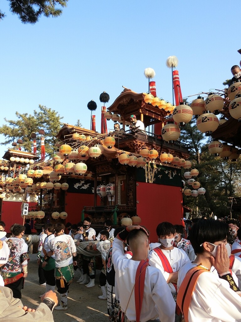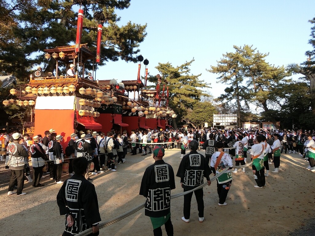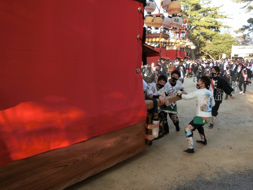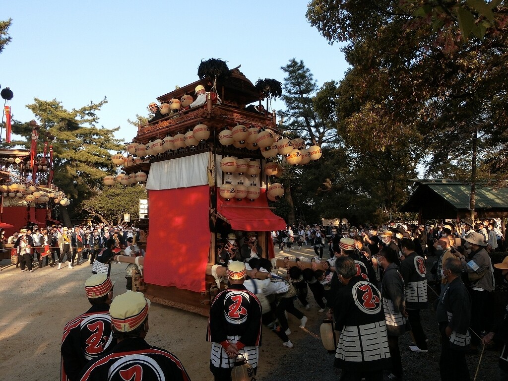昔は、前夜祭でも南側へ曳き出していたそうですが、JR武豊駅前で曳き揃えを行うようになってからは、西側に出るようになったそうです。