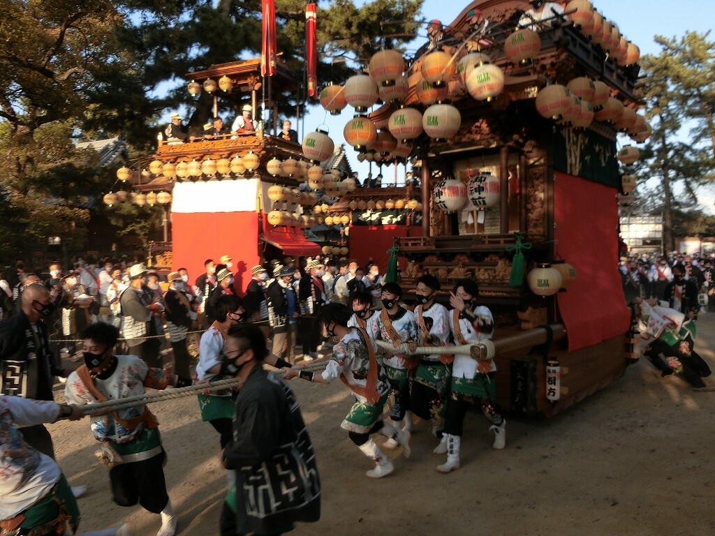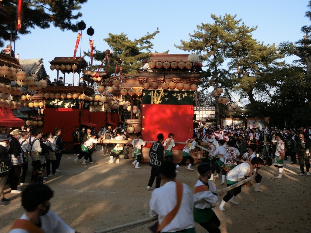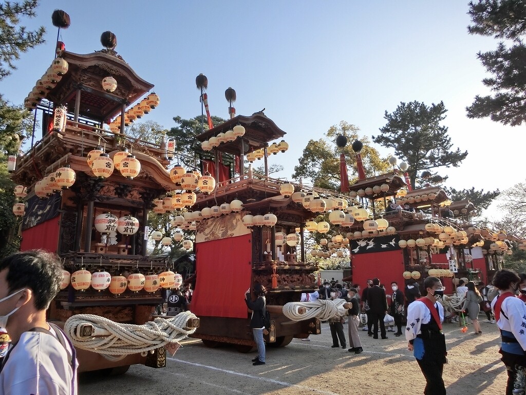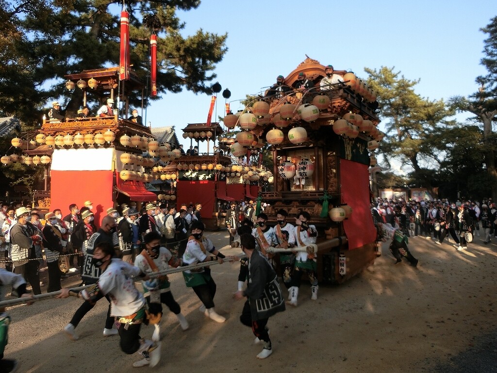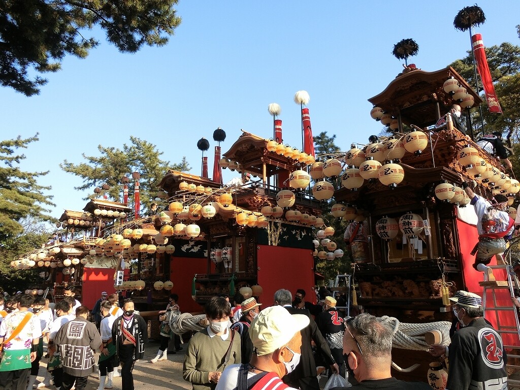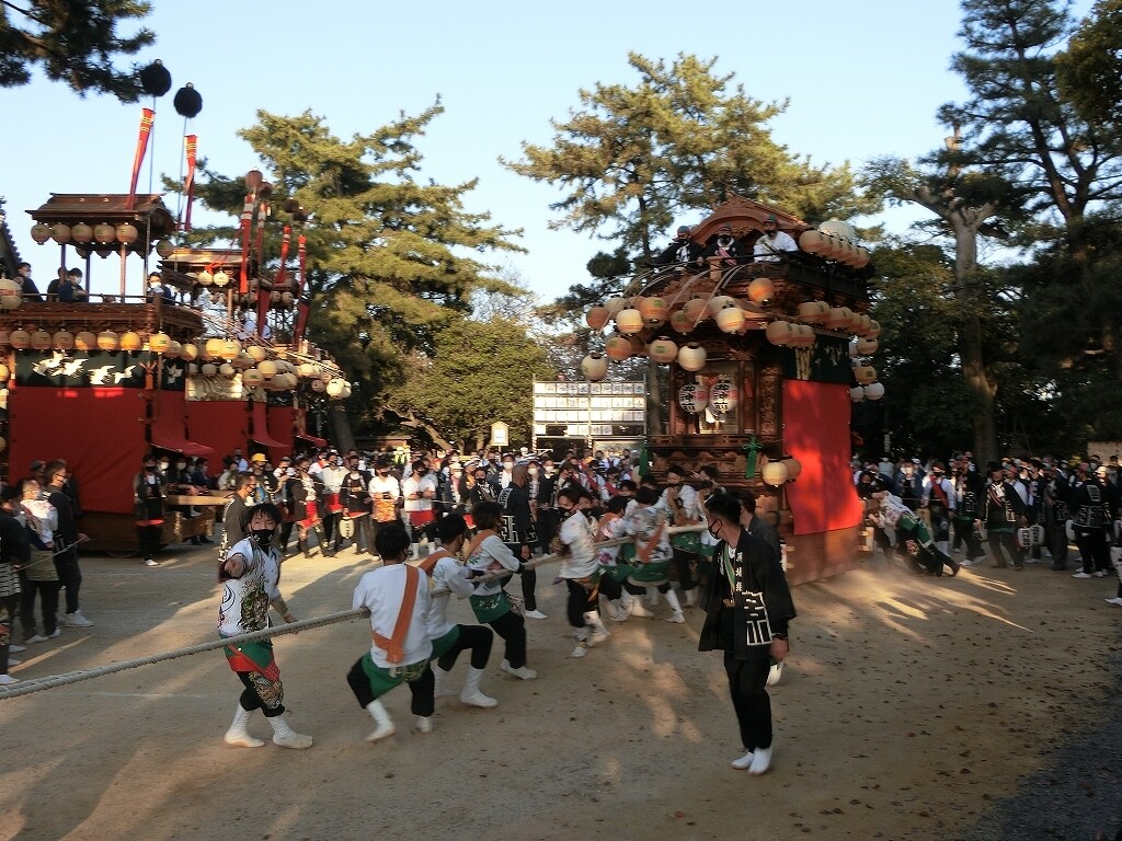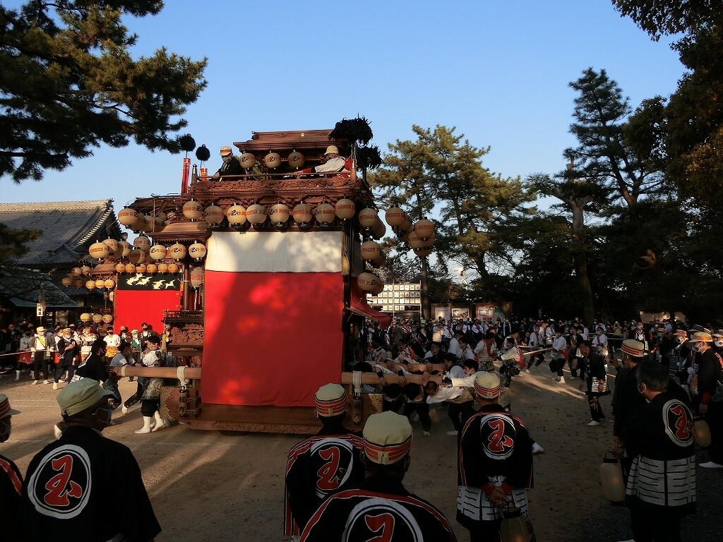 昔は、前夜祭でも南側へ曳き出していたそうですが、JR武豊駅前で曳き揃えを行うようになってからは、西側に出るようになったそうです。