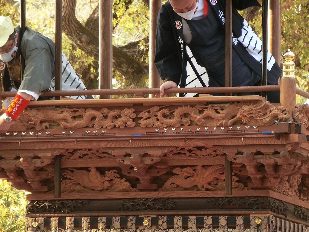 曳き出しまで時間が短いので、すぐに提燈を取り付けます。