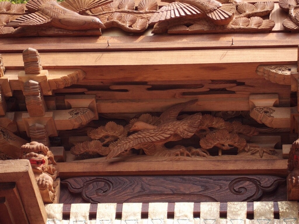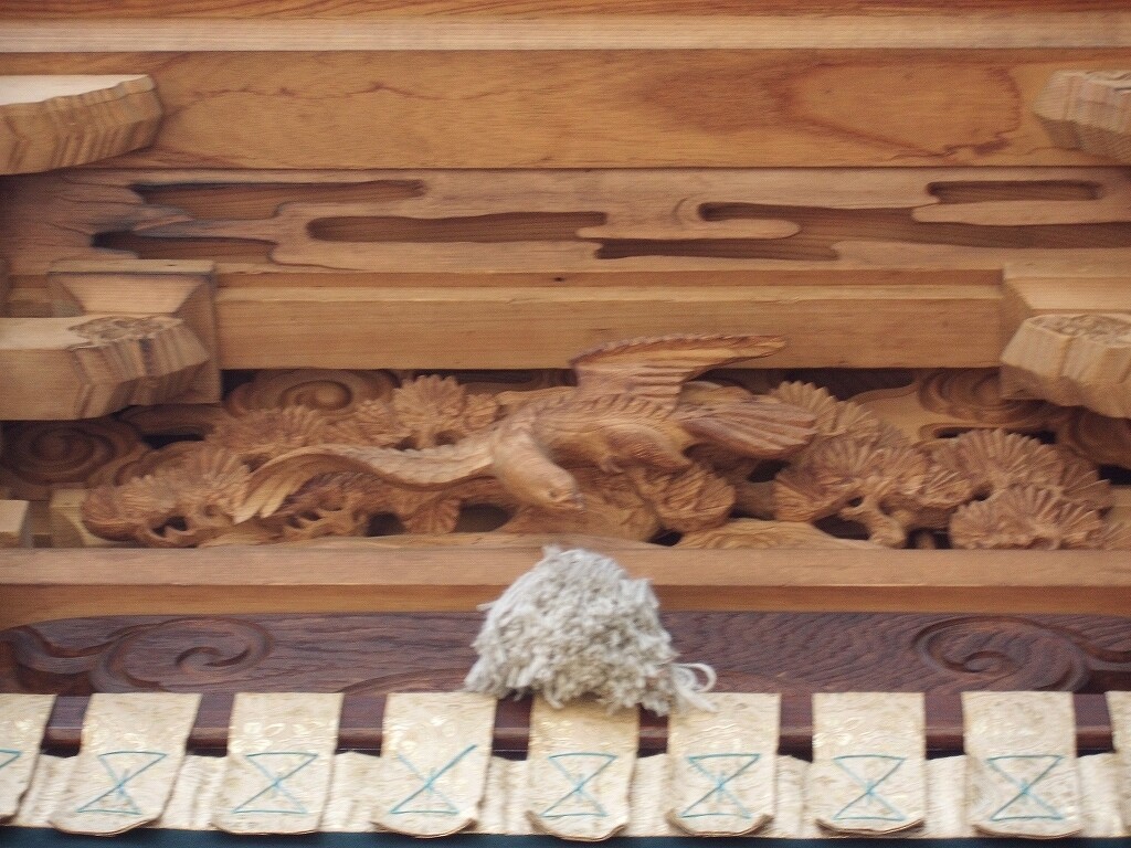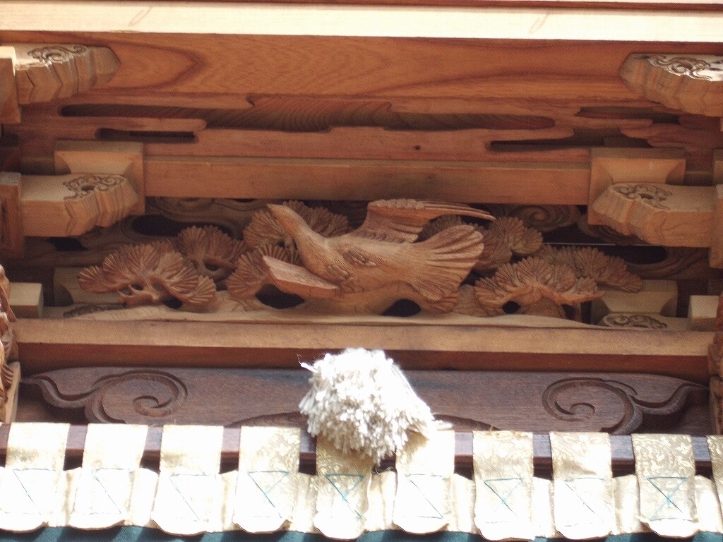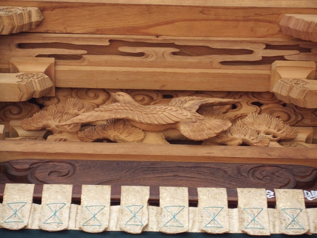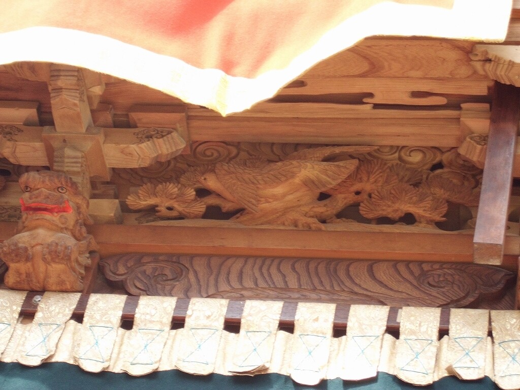 山車紹介【武豊町 長尾部 下門組 八幡車③】 二〇二二年卯月三十日 コメント数:0 コメント カテゴリ:知多型山車祭随筆 by 風神雷神 長尾下門組八幡車の続きです!持送(角繋ぎ)蹴込(老松に鳩)堂山蟇股(松に鳩)ゴマ隠し台輪兜金など引幕(対い鳩と下門組紋の金刺繍)水引幕(濃緑地に飛鷺の刺繍 岡本亮彦下絵)追幕(緋羅紗地に下門組紋と八幡車の文字刺繍)替追幕(緋羅紗地に下門組紋と八幡車の文字刺繍)前棚人形(応神天皇)上山人形(武内宿禰、神功皇后)山車庫 【お願い】 皆様のクリック(応援)がランキングに反映されます。 私の見学に向かう原動力ともなりますので、ご協力の程よろしくお願いいたします! (有効カウント1日1回のみ) ↓↓↓ にほんブログ村 にほんブログ村 YouTubeチャンネル登録もよろしくお願いいたします! ↓↓↓石取祭・上げ馬神事・名古屋型山車・知多型山車・犬山型車山・だんじり祭り 拍手もジャンジャンしちゃってください!! ↓↓ 「知多型山車」カテゴリの最新記事 < 前の記事次の記事 > コメント コメントフォーム 名前 コメント 記事の評価 リセット リセット 顔 星 情報を記憶 コメントを投稿する