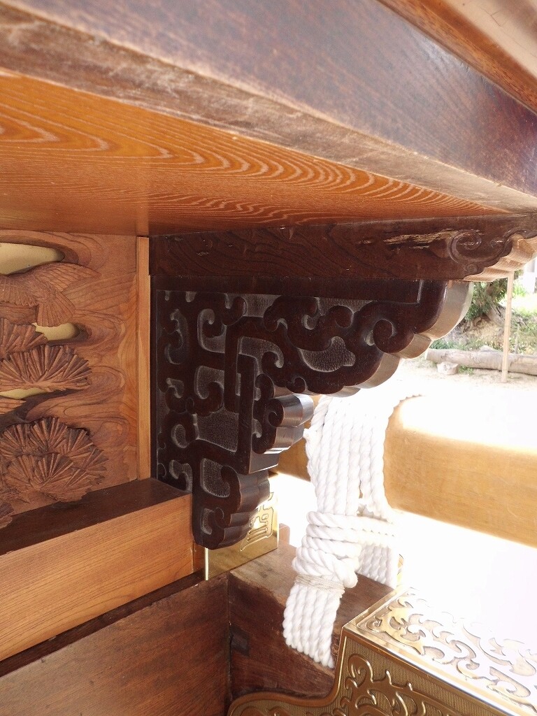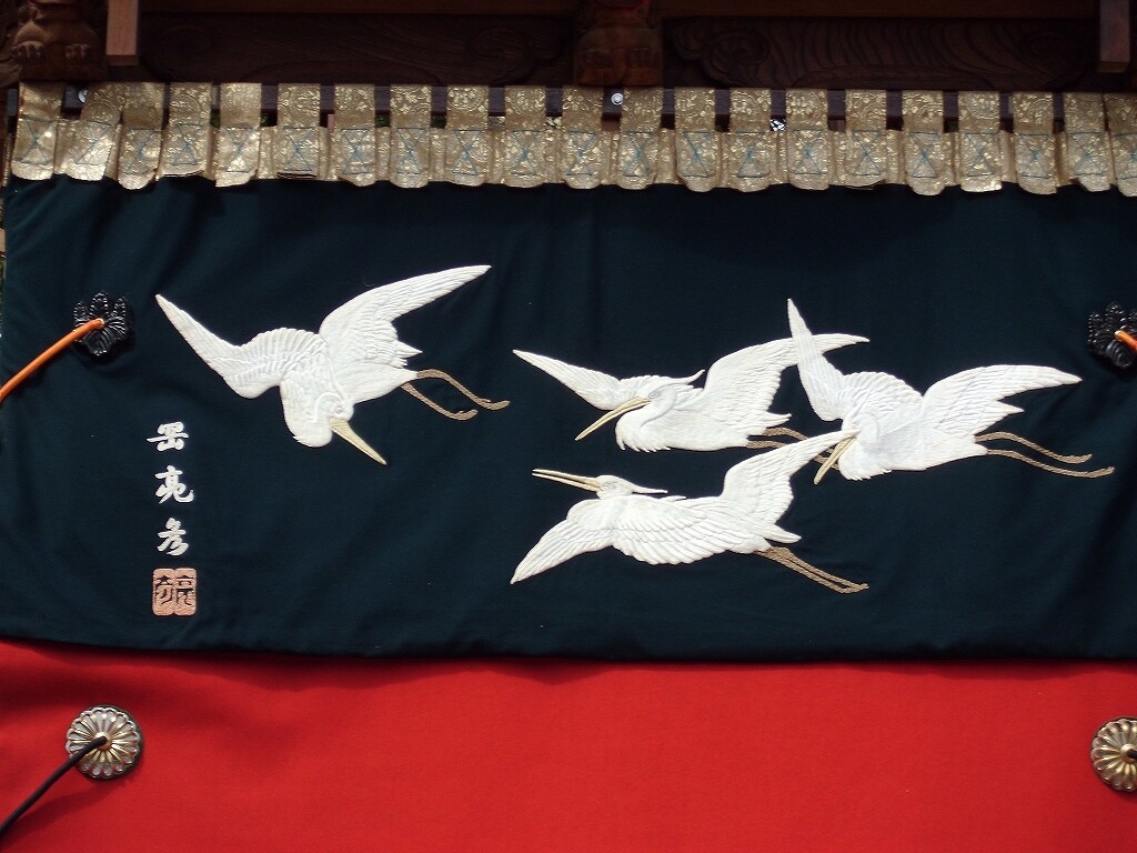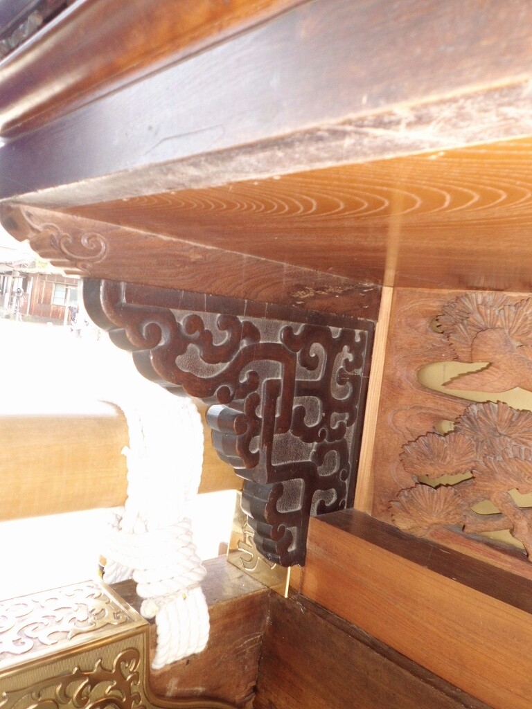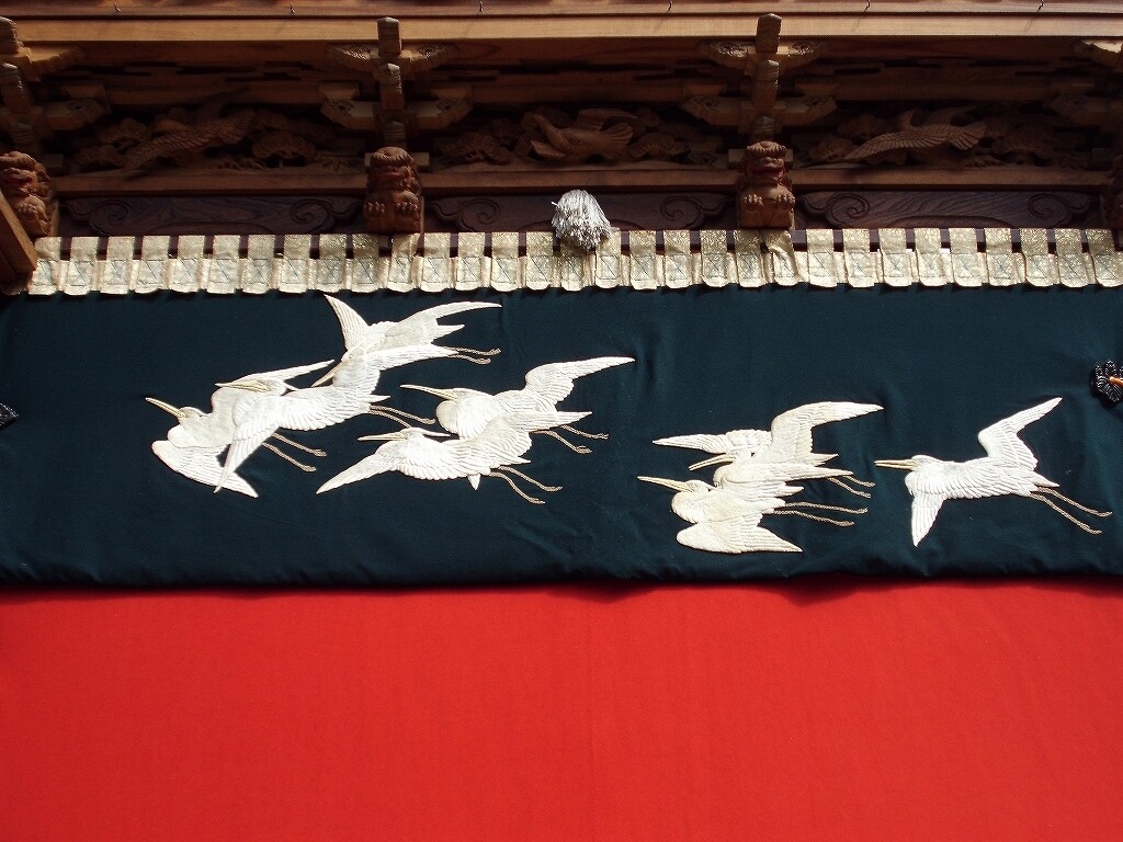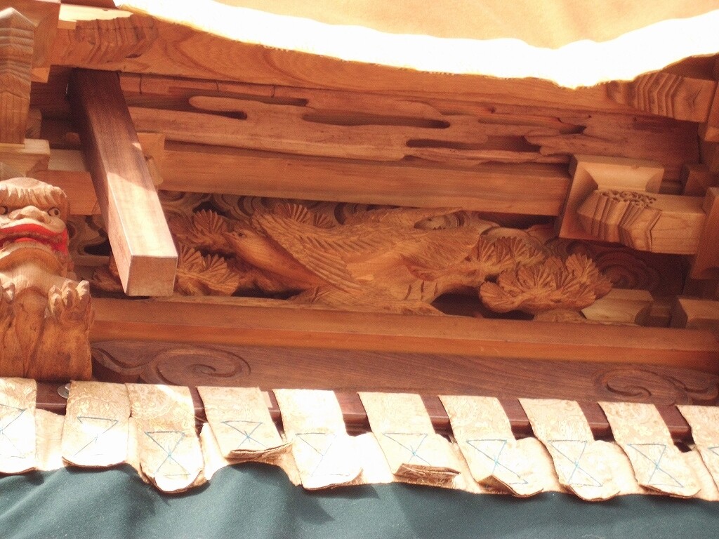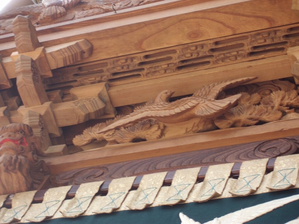 山車紹介【武豊町 長尾部 下門組 八幡車③】 二〇二二年卯月三十日 コメント数:0 コメント カテゴリ:知多型山車祭随筆 by 風神雷神 長尾下門組八幡車の続きです!持送(角繋ぎ)蹴込(老松に鳩)堂山蟇股(松に鳩)ゴマ隠し台輪兜金など引幕(対い鳩と下門組紋の金刺繍)水引幕(濃緑地に飛鷺の刺繍 岡本亮彦下絵)追幕(緋羅紗地に下門組紋と八幡車の文字刺繍)替追幕(緋羅紗地に下門組紋と八幡車の文字刺繍)前棚人形(応神天皇)上山人形(武内宿禰、神功皇后)山車庫 【お願い】 皆様のクリック(応援)がランキングに反映されます。 私の見学に向かう原動力ともなりますので、ご協力の程よろしくお願いいたします! (有効カウント1日1回のみ) ↓↓↓ にほんブログ村 にほんブログ村 YouTubeチャンネル登録もよろしくお願いいたします! ↓↓↓石取祭・上げ馬神事・名古屋型山車・知多型山車・犬山型車山・だんじり祭り 拍手もジャンジャンしちゃってください!! ↓↓ 「知多型山車」カテゴリの最新記事 < 前の記事次の記事 > コメント コメントフォーム 名前 コメント 記事の評価 リセット リセット 顔 星 情報を記憶 コメントを投稿する