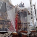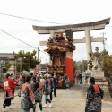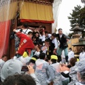 3/18 四山が乙川八幡社境内に揃いました!南山の若衆は殿山サヤ前で祝います。西山の若衆は山車前で車座になり、伊勢音頭を唄います。最後に一番楫が唄います。肩車をされて一番楫のみ唄える伊勢音頭を唄います。お祝いにいただいた酒を飲みます。宮本である浅井山は前棚三番 ...