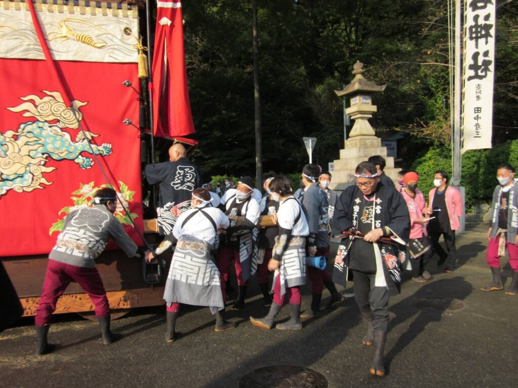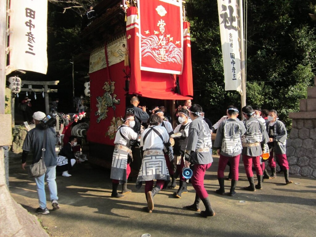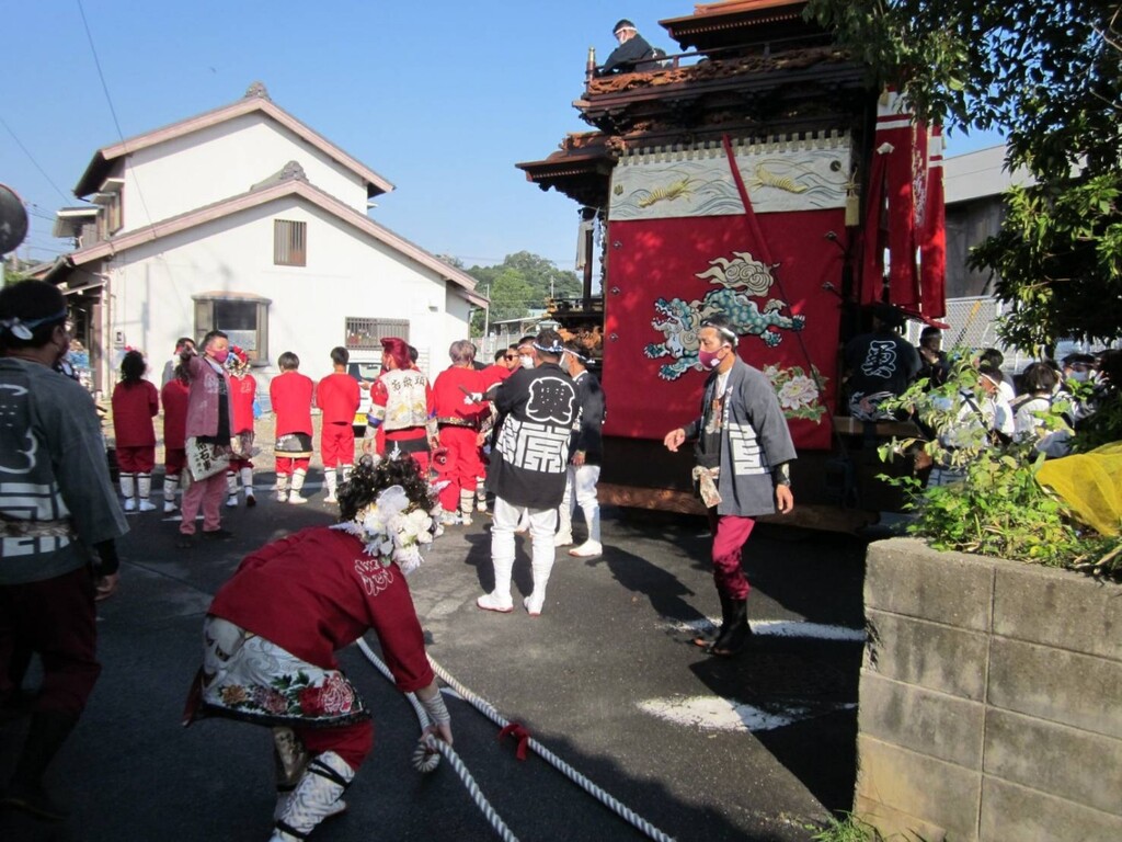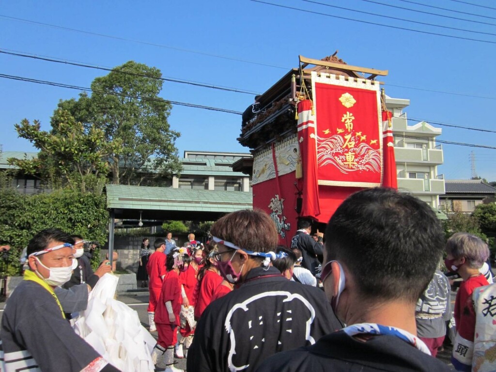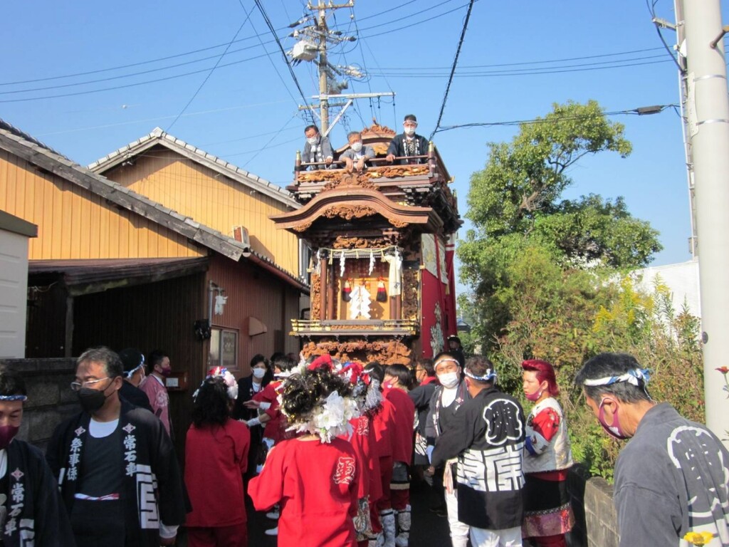 午前6時40分、若衆と奥梶会によりサヤから常石神社前に常石車が曳き出されます。