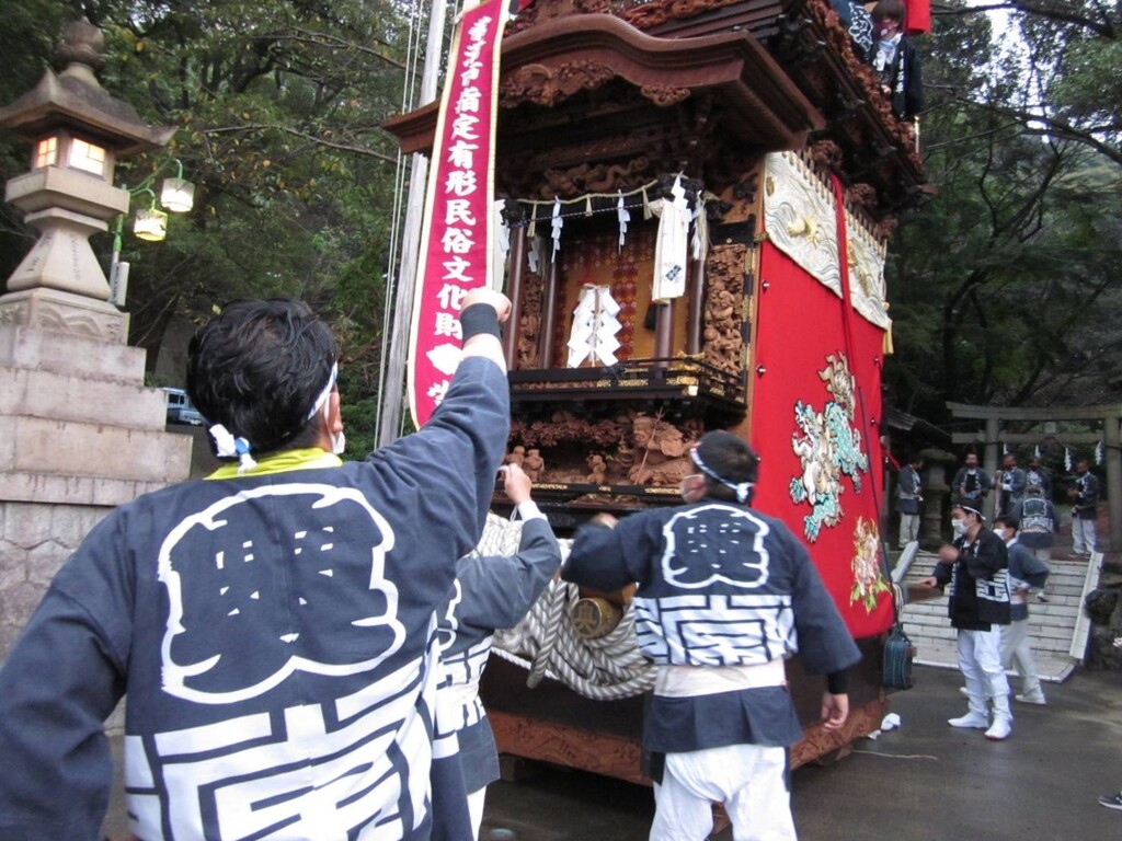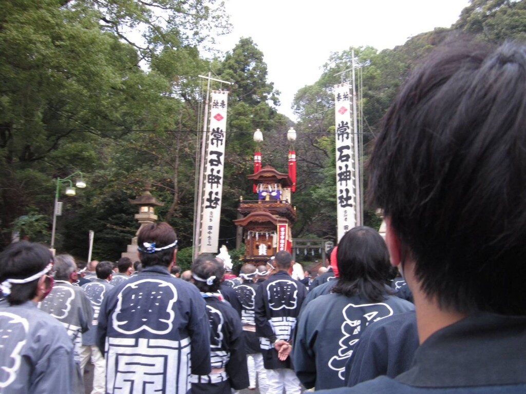 常石神社に囃子を奉納して出発です。