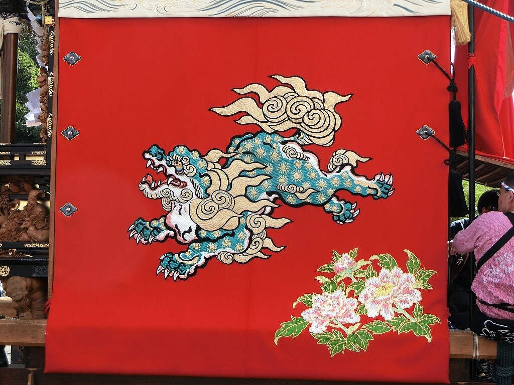 お気付きの方も多いと思いますが、今回大幕に唐獅子の刺繍が施されました。