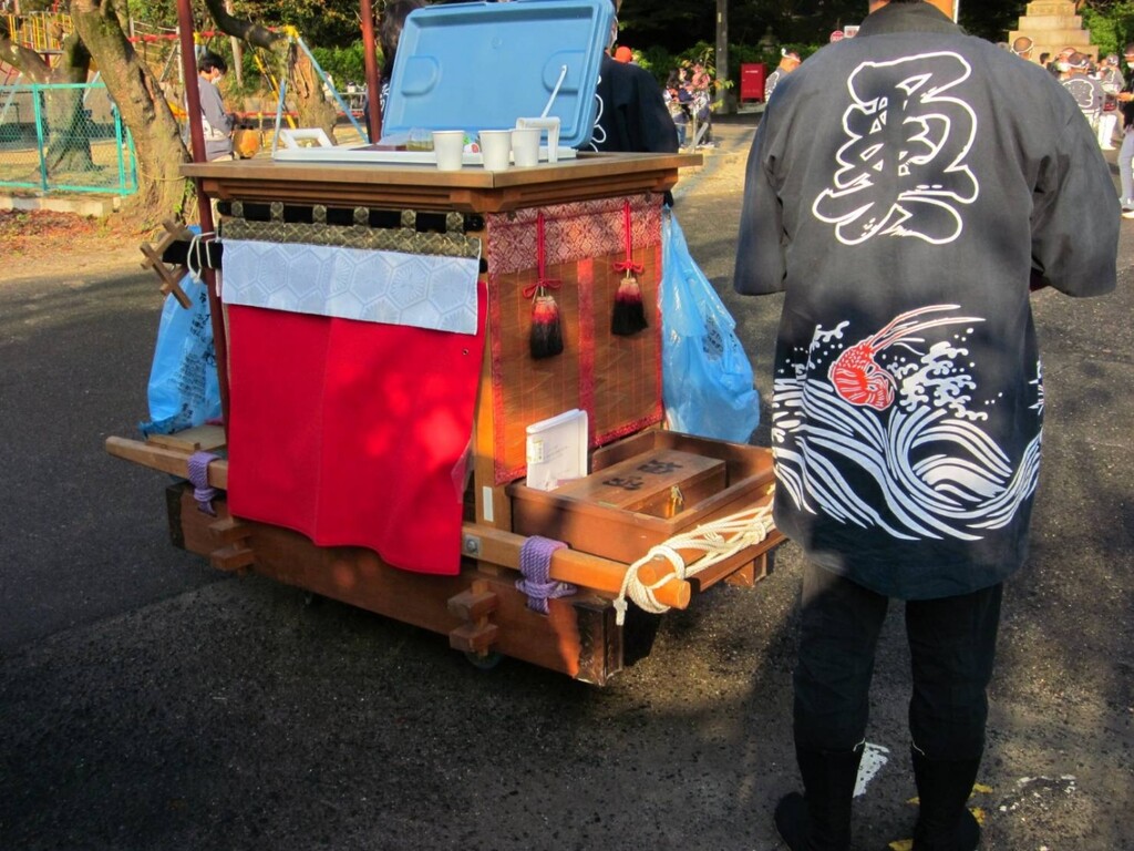 常石車の後ろにもミニ山車の常石小車が付き、消毒用ウェットティッシュなどを備えています。