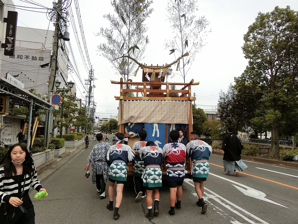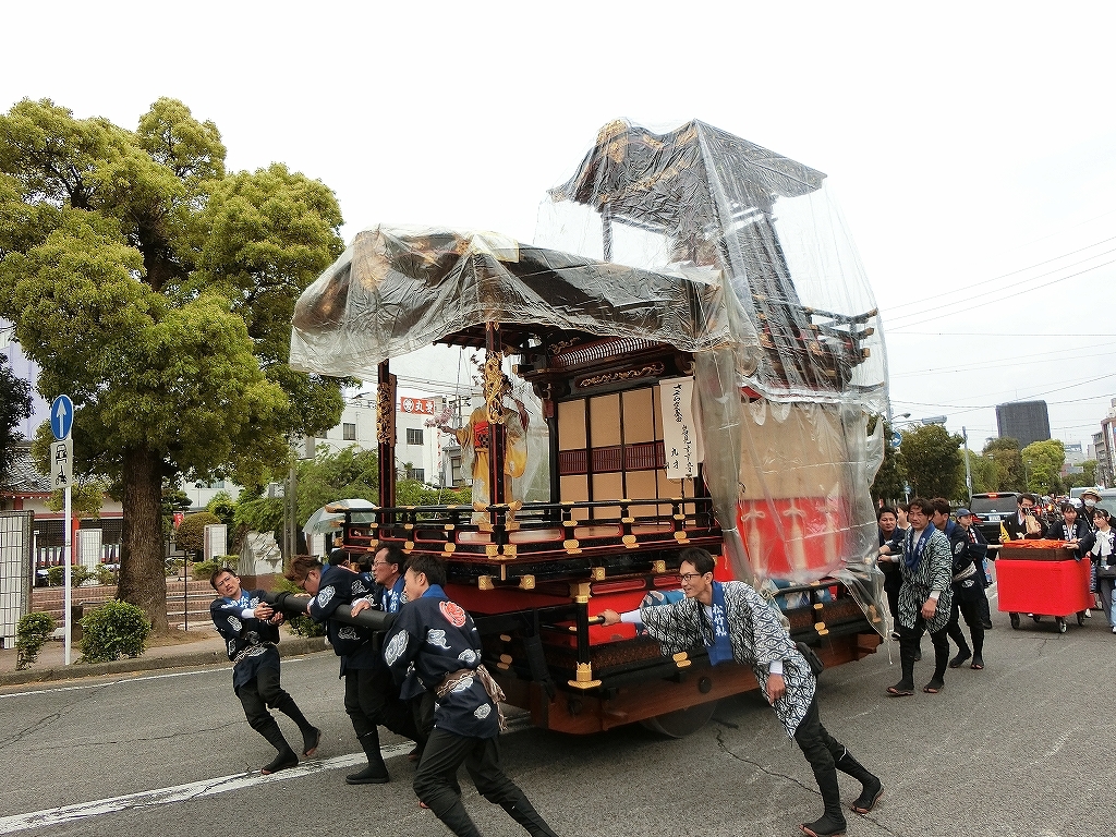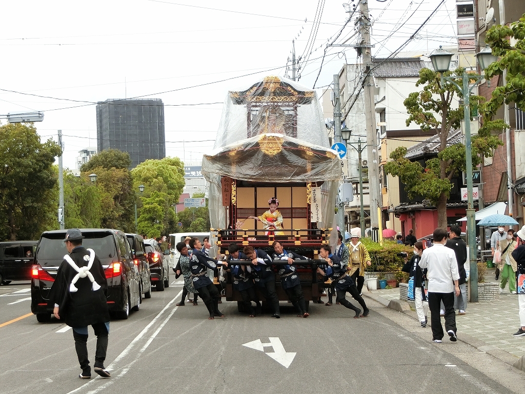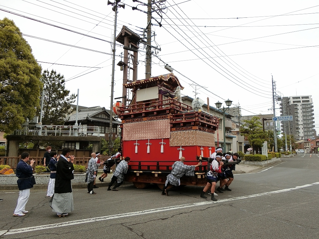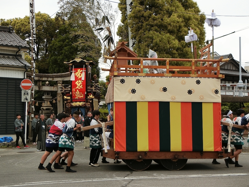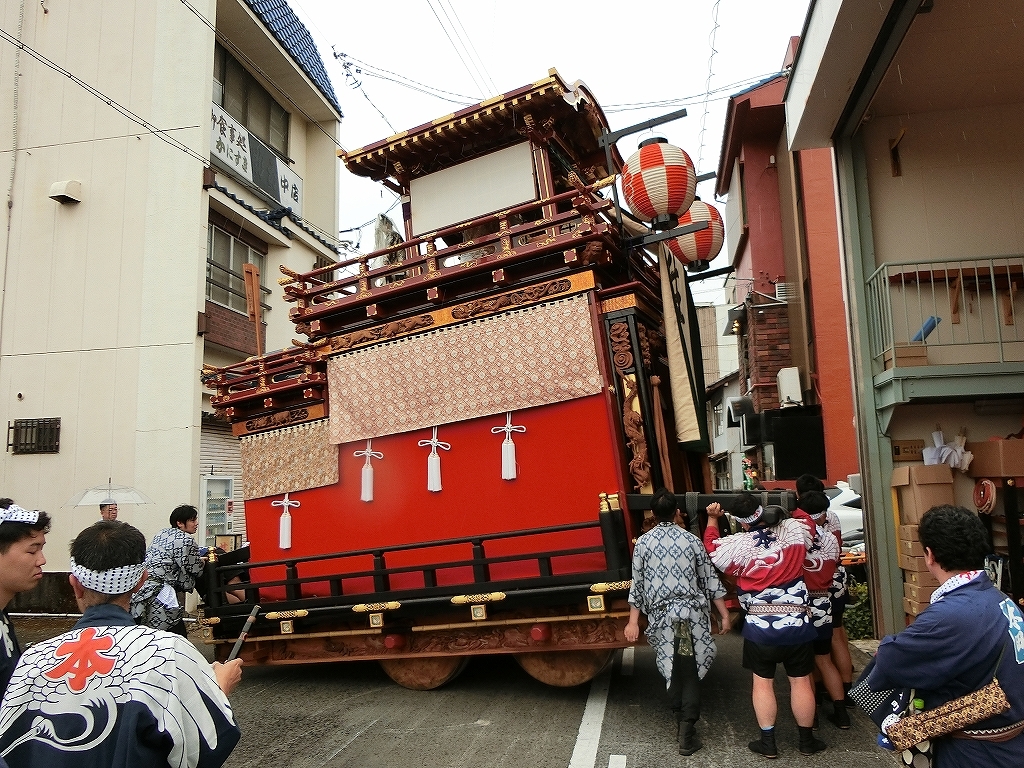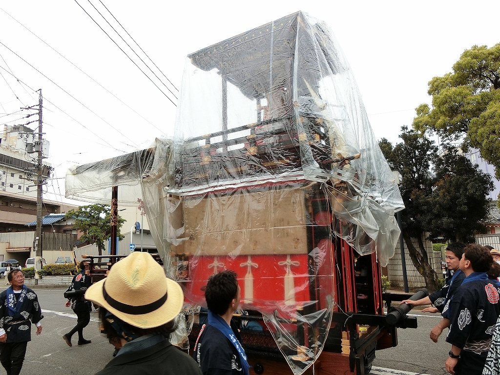 雨天で夜宮は中止となり、この後の曳き廻しは各町判断になったようです。