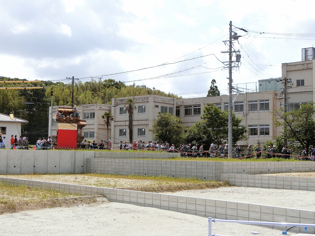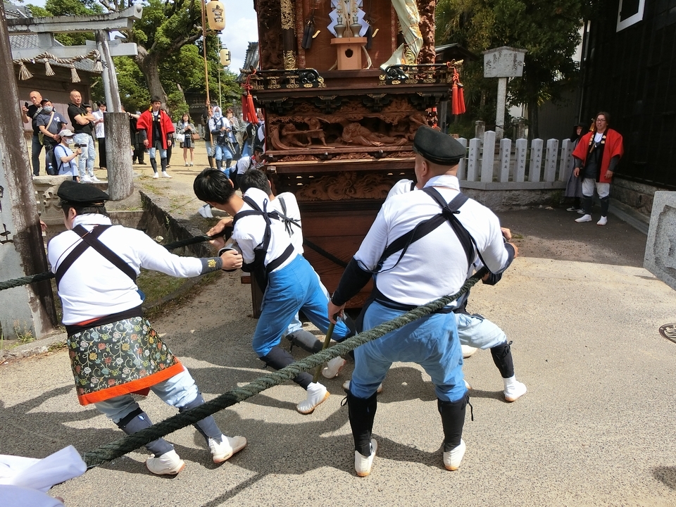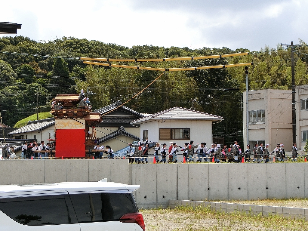 萩交差点方面に曳き出します。
