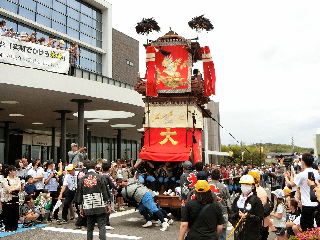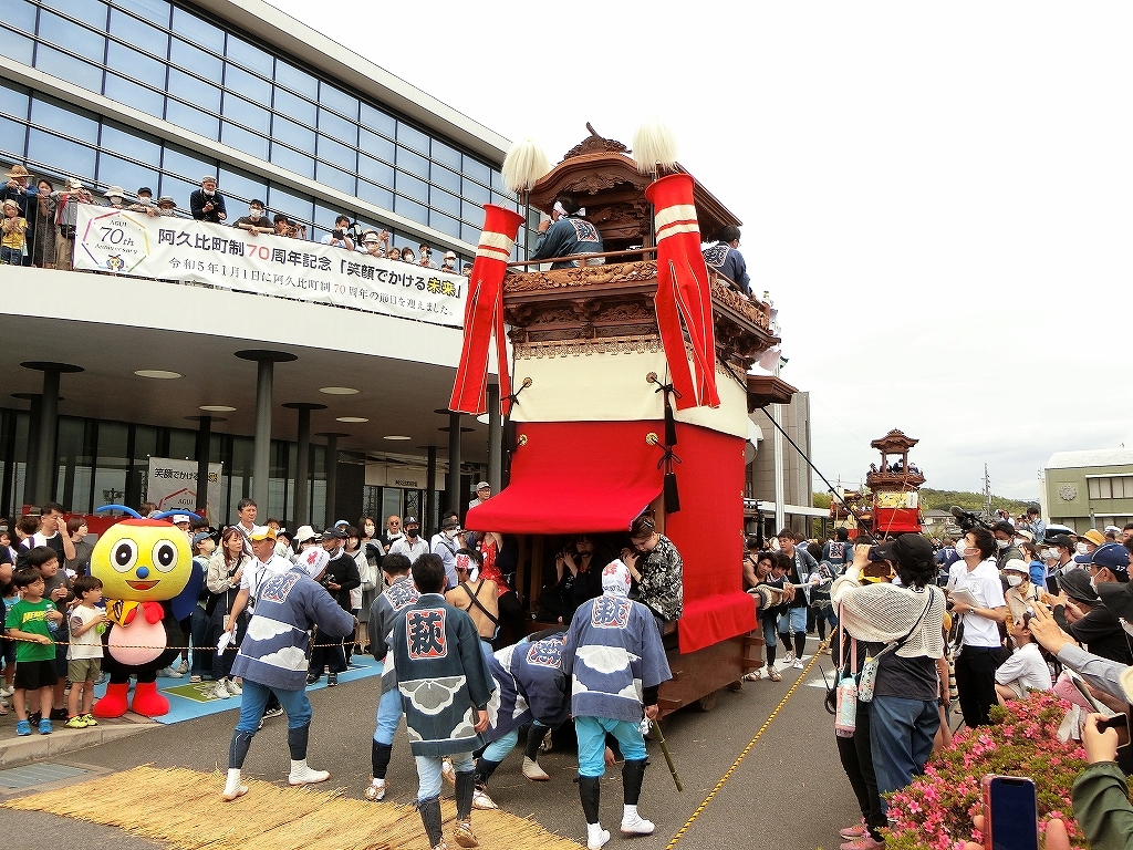 '23 阿久比町 町制70周年記念あぐい山車まつり⑦ 二〇二三年文月廿八日 コメント数:0 コメント カテゴリ:知多型山車愛知県 by 風神雷神 5/28 宮津地区の2台も到着し、役場駐車場への曳き込みます!庁舎前では町長とヘイケボタルのアグピーがお迎えします。役場職員の白旗の合図で曳き込み開始です。大古根 八幡車横松 横社(七福神車)上山を上げて勢い良く走ってきました。萩 大山車内側に寄っています。 【お願い】 皆様のクリック(応援)がランキングに反映されます。 私の見学に向かう原動力ともなりますので、ご協力の程よろしくお願いいたします! (有効カウント1日1回のみ) ↓↓↓ にほんブログ村 にほんブログ村 YouTubeチャンネル登録もよろしくお願いいたします! ↓↓↓石取祭・上げ馬神事・名古屋型山車・知多型山車・犬山型車山・だんじり祭り 拍手もジャンジャンしちゃってください!! ↓↓ 「知多型山車」カテゴリの最新記事 < 前の記事次の記事 > コメント コメントフォーム 名前 コメント 記事の評価 リセット リセット 顔 星 情報を記憶 コメントを投稿する