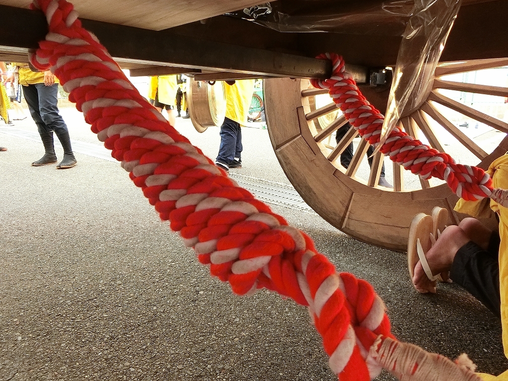 曳綱を新調し、読者様が独学で漁師編みをして祭車に取り付けました。