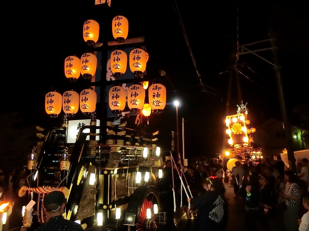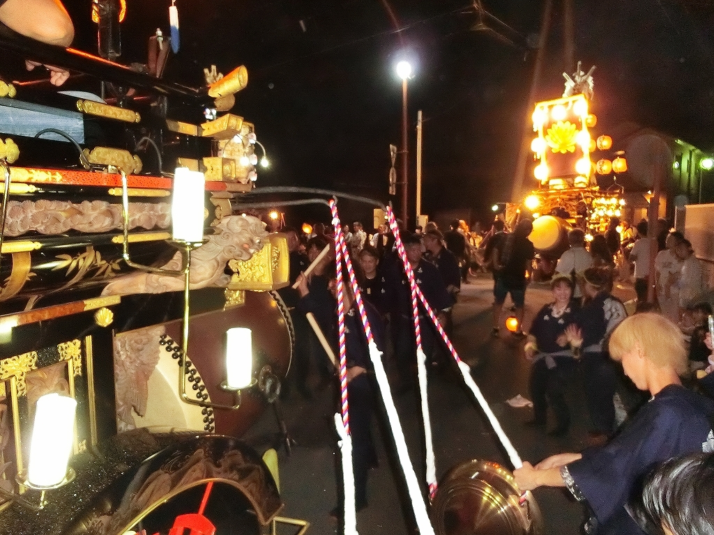 各町内から神社に向けて祭車が曳き出されます。