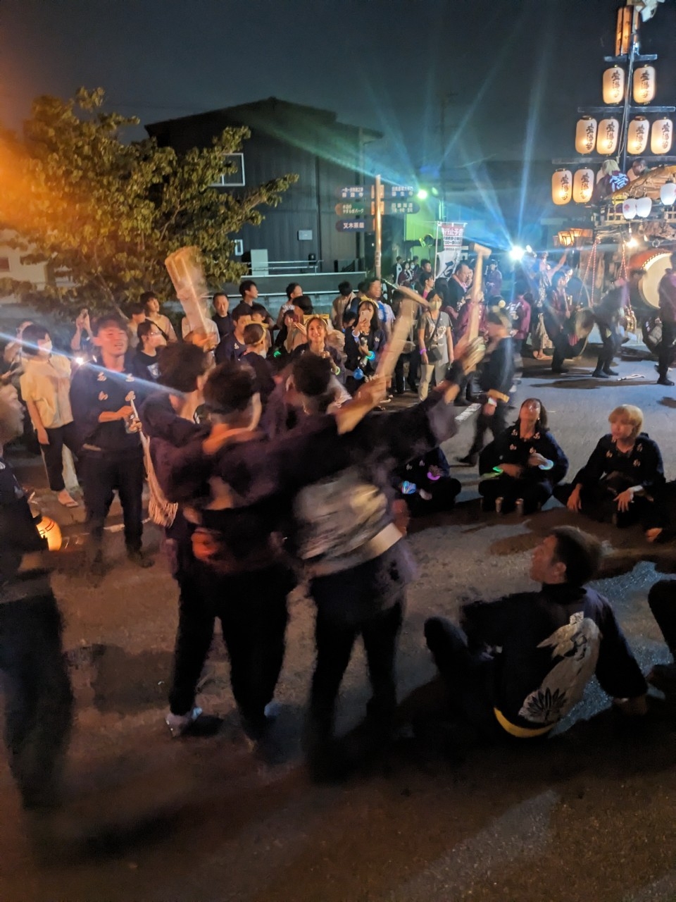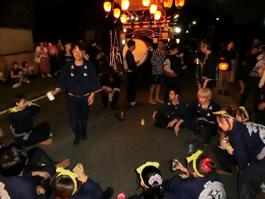 祭車の後ろでは青年会が車座になって、祭唄を唄います。