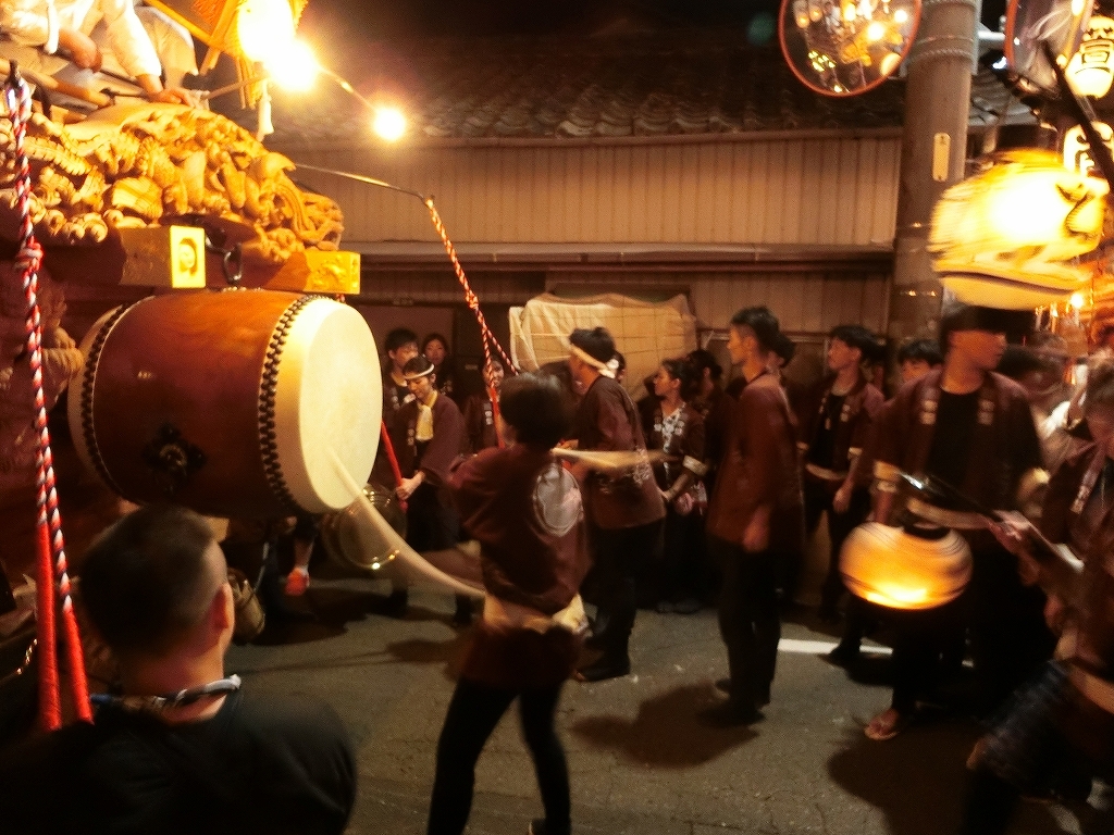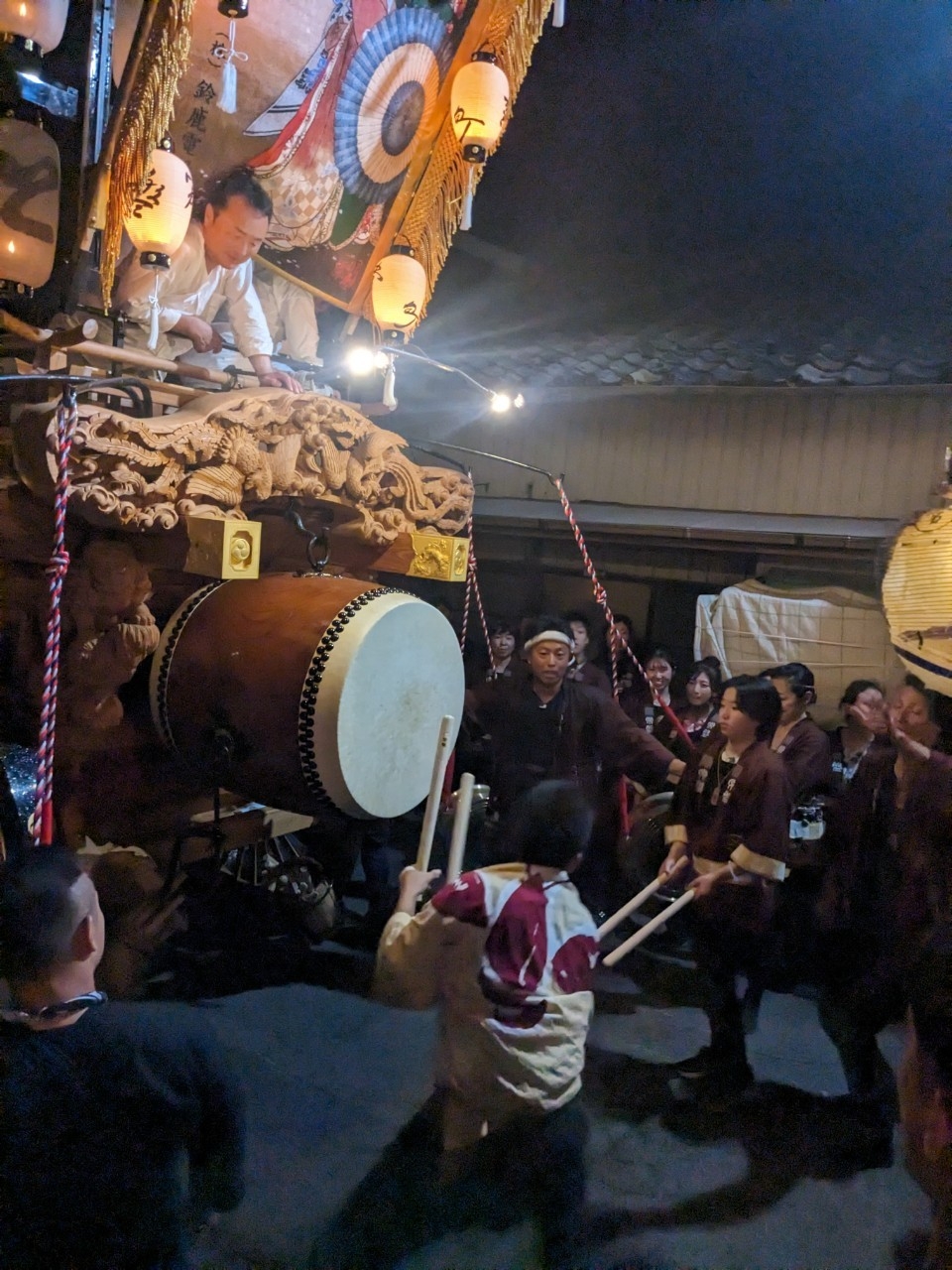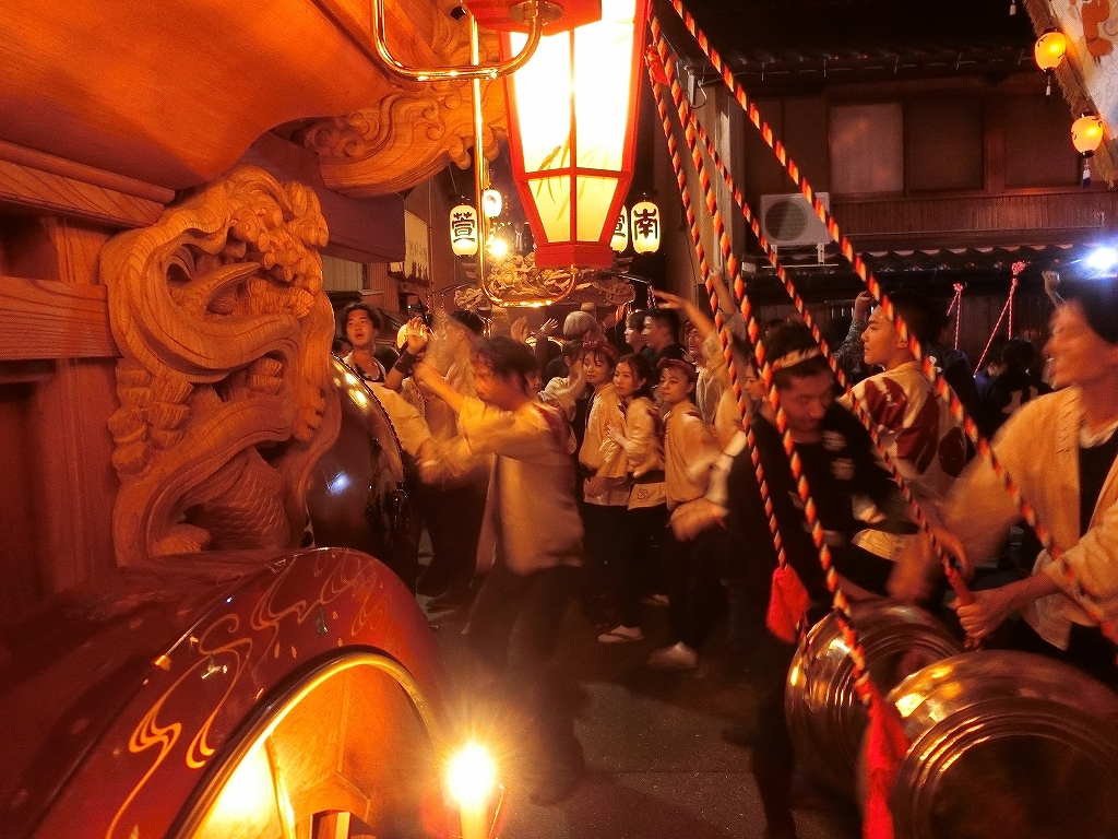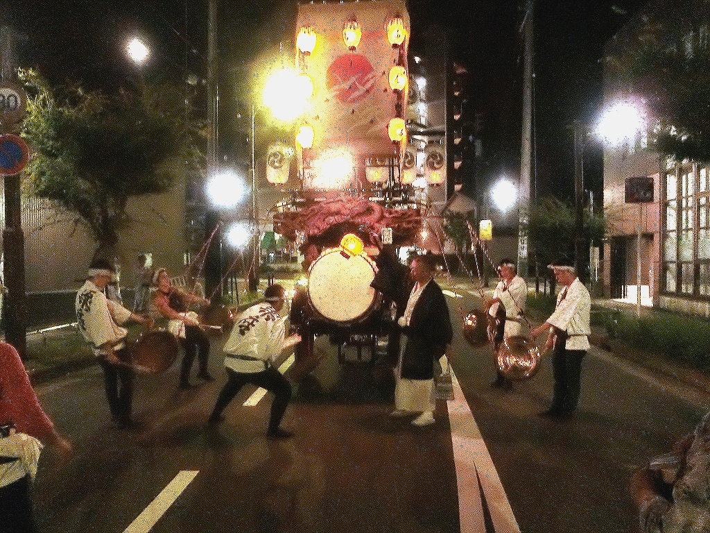 各町は午前0時まで叩きますが、六郷連は祭車庫へと戻ります。