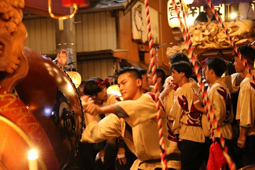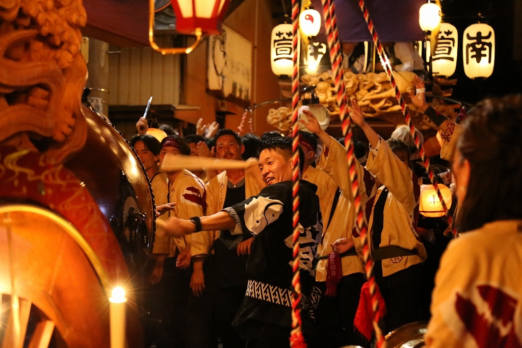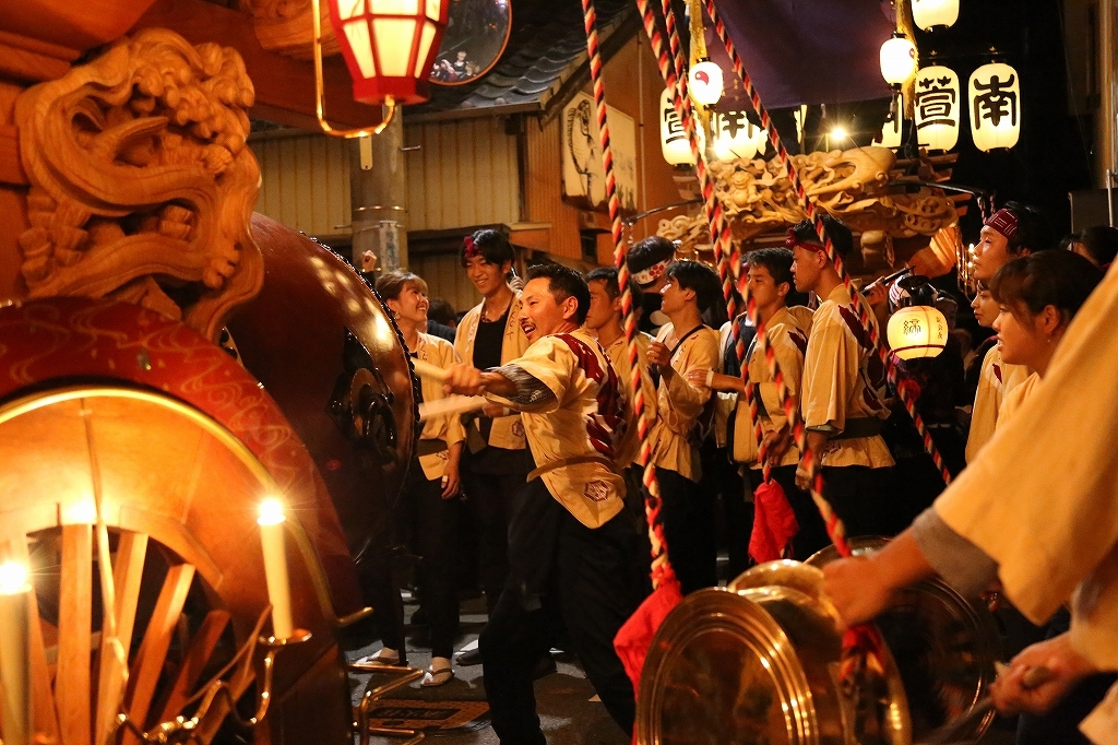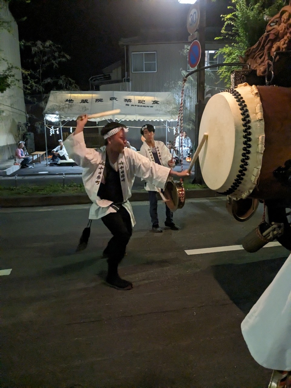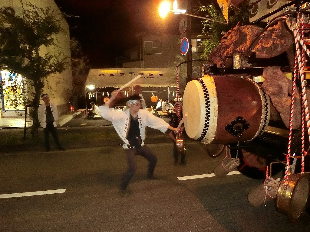 各町は午前0時まで叩きますが、六郷連は祭車庫へと戻ります。