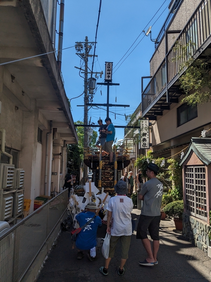 新調した御幣を取り付けようとするも、採寸ミスなのか取り付けられず。