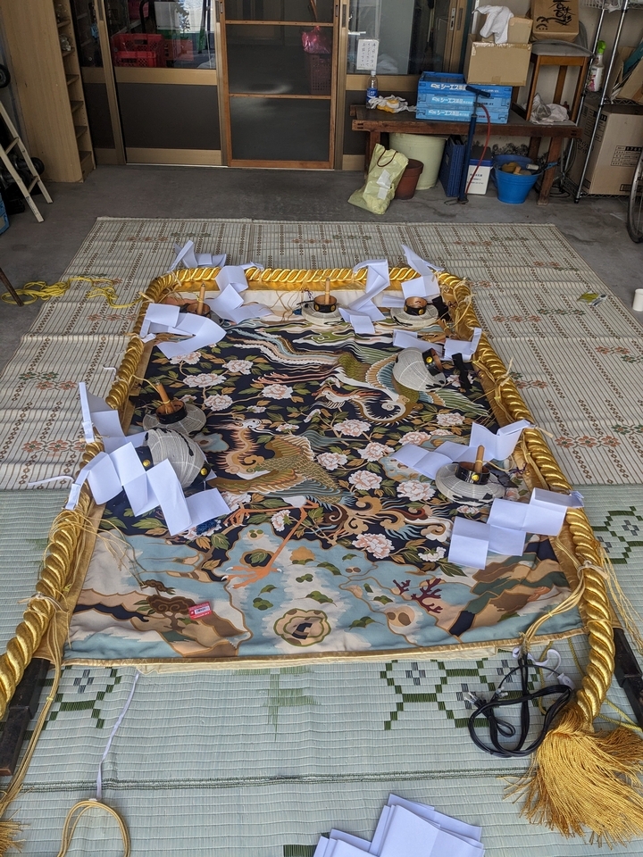 とはいえ、胴幕(額)や天幕、擬宝珠などは安全面を考えて飾りません。