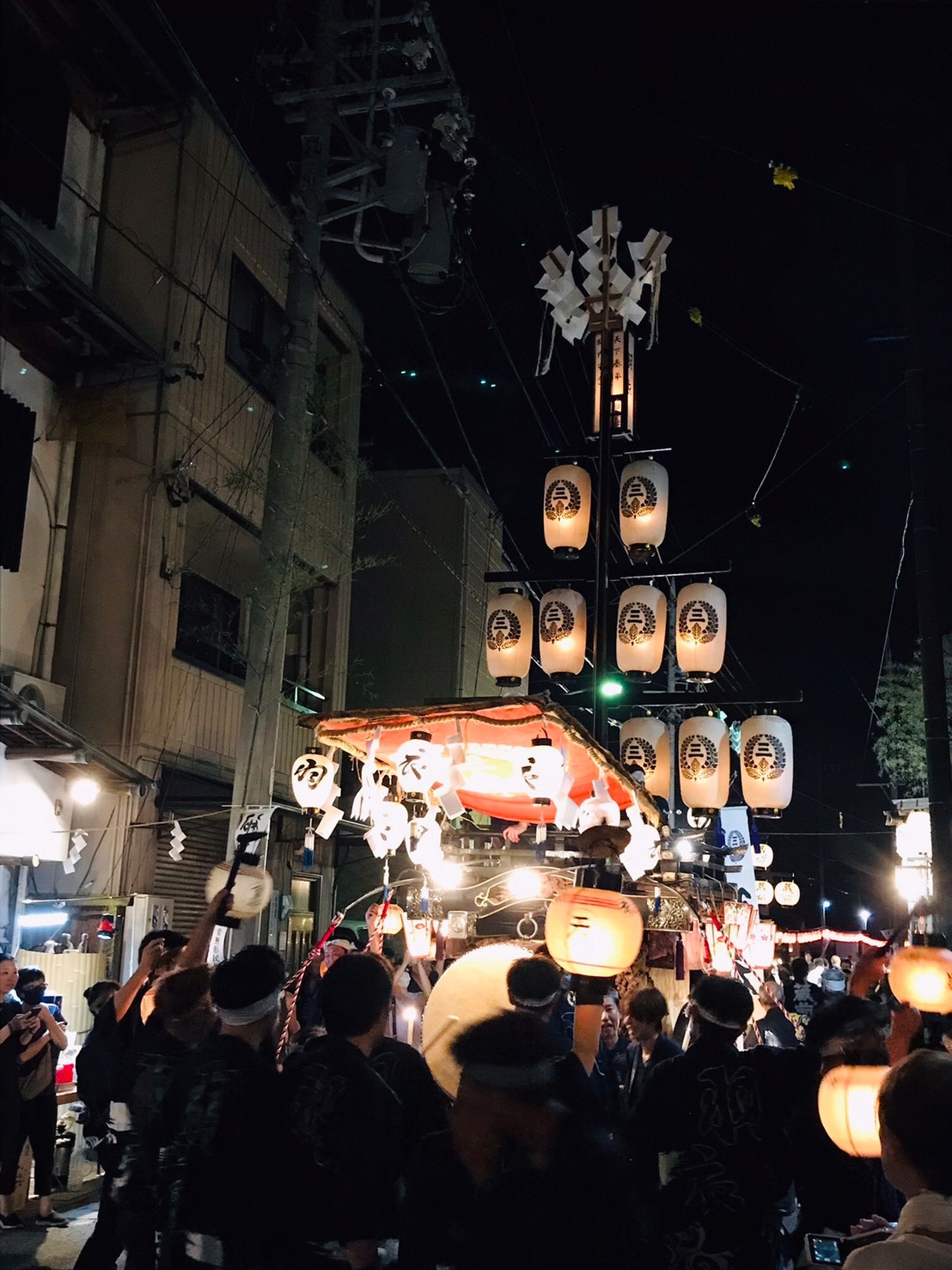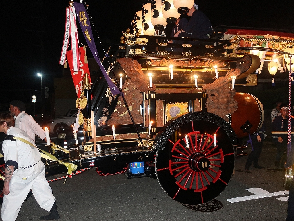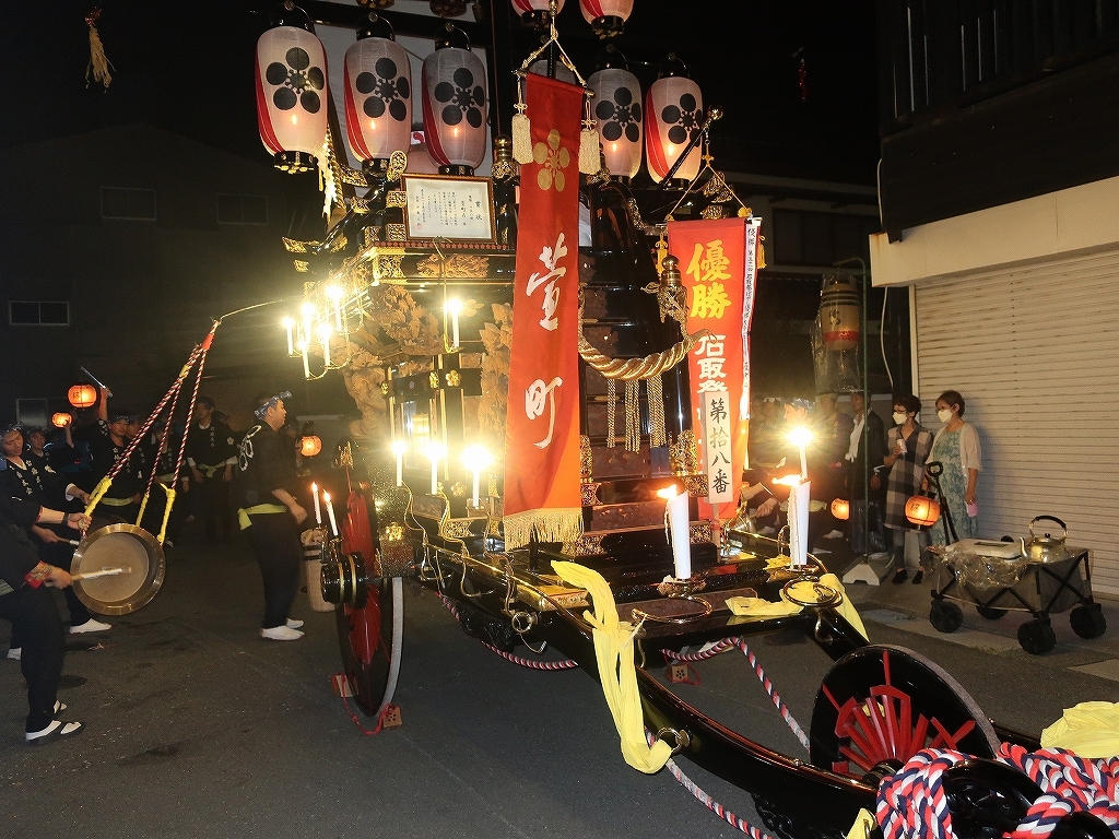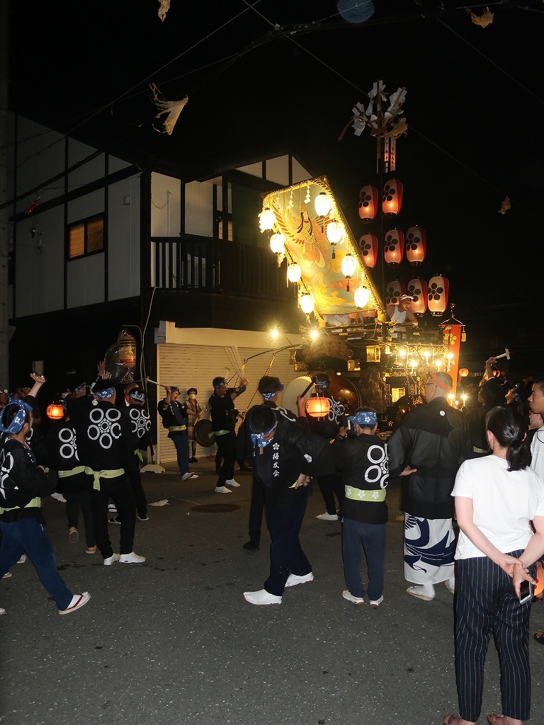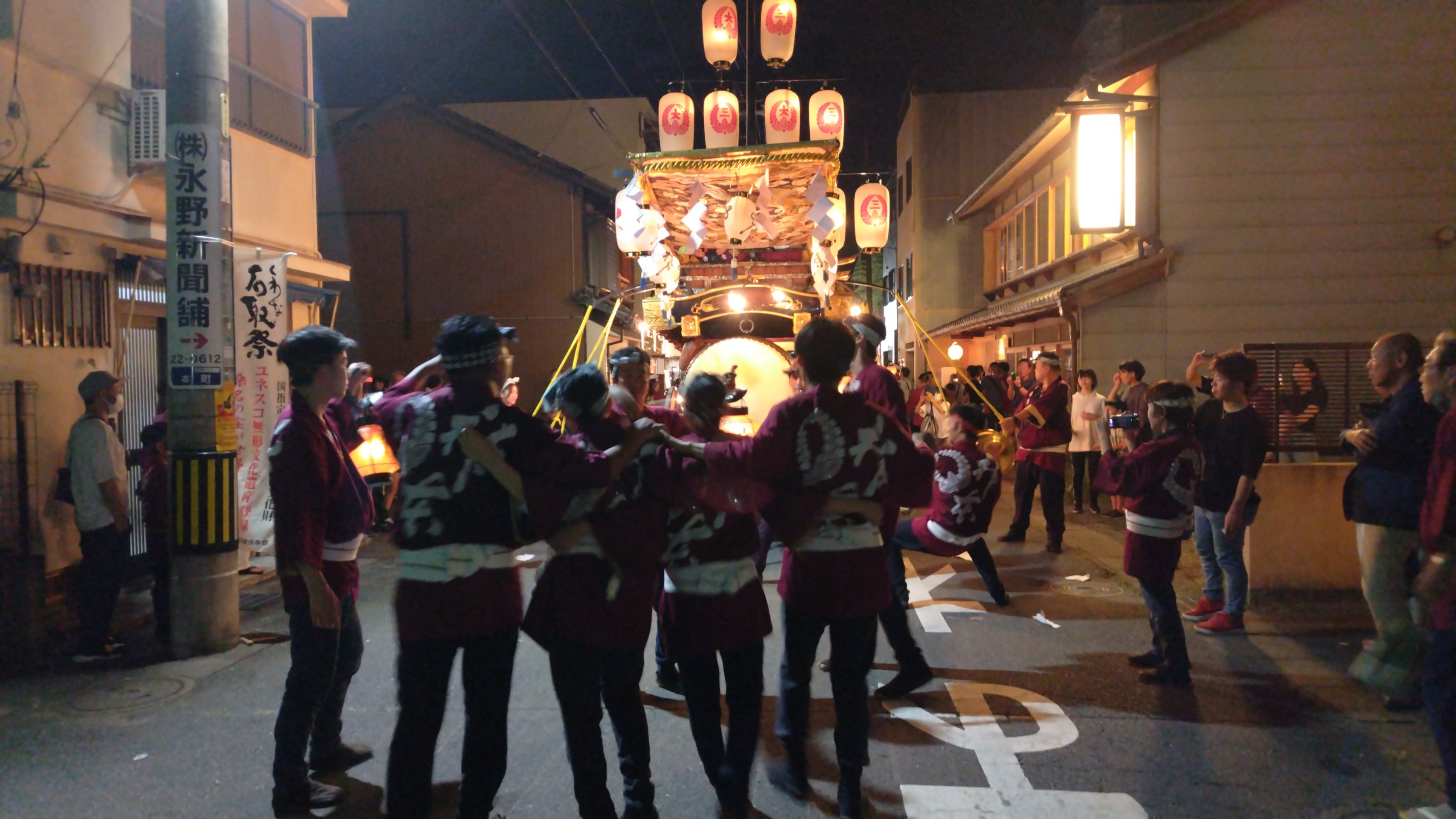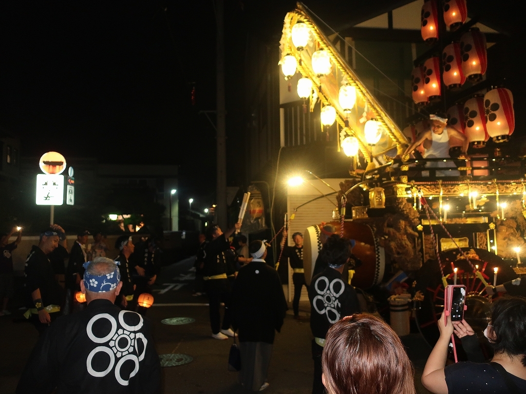 午前0時頃の神楽太鼓の合図で赤提燈が振られ、一斉に叩き出します。