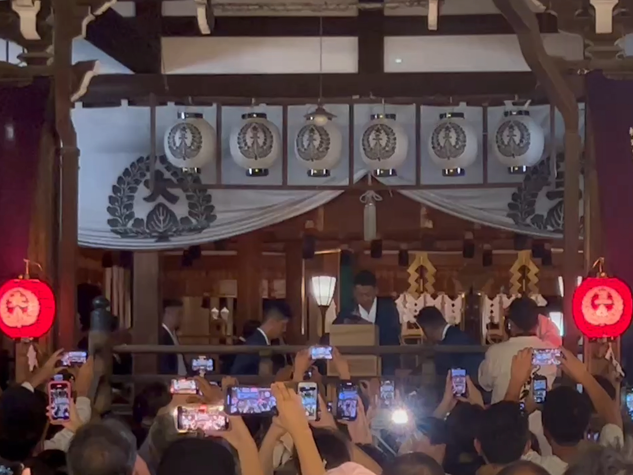 桑名宗社拝殿前では叩き出しの合図を見ようとスマホを構えた方々が沢山いました。